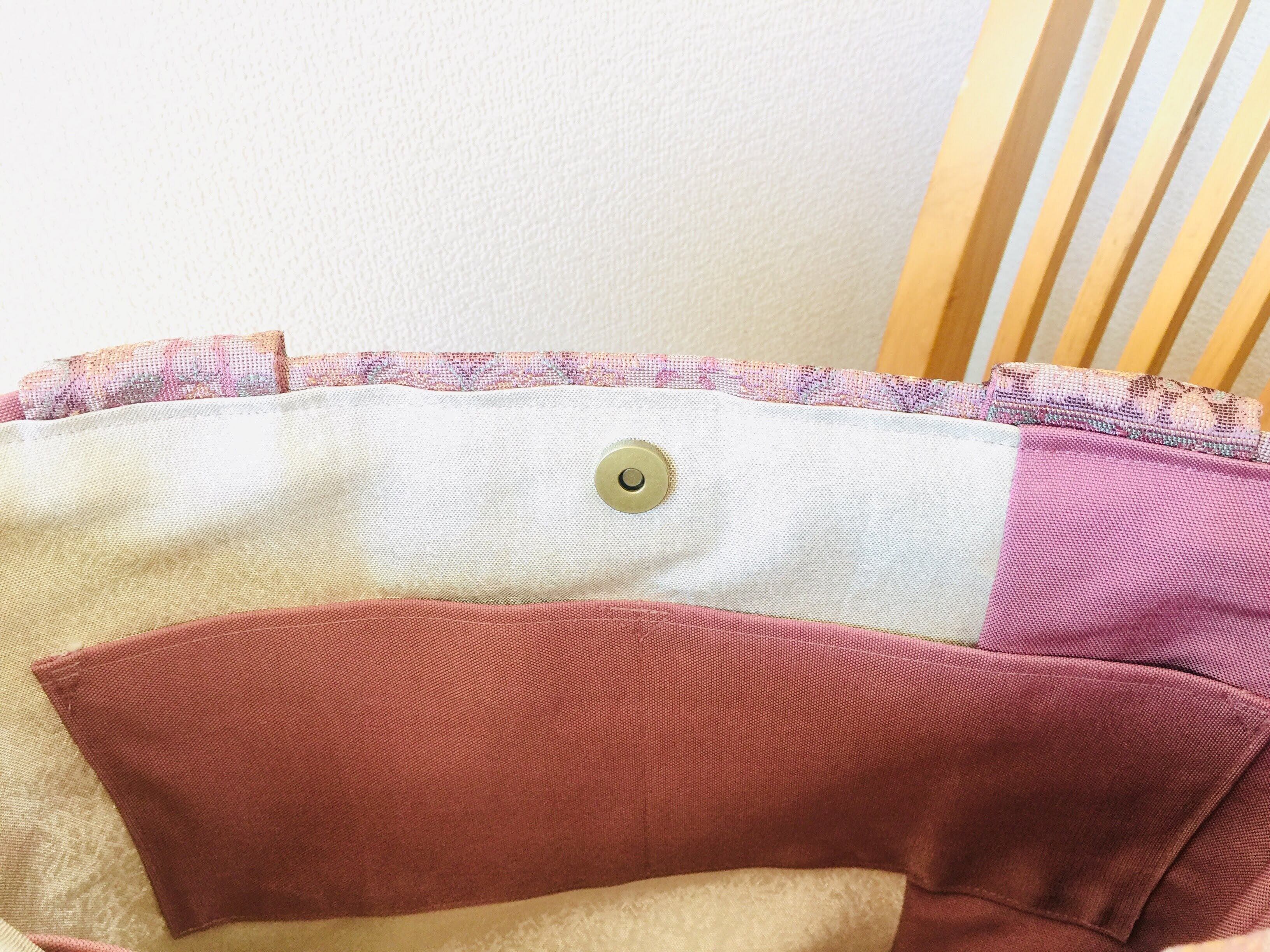 裏地にも帯生地を使用しております。しっかりとした帯生地で製作したバッグですので強度もあり安心。