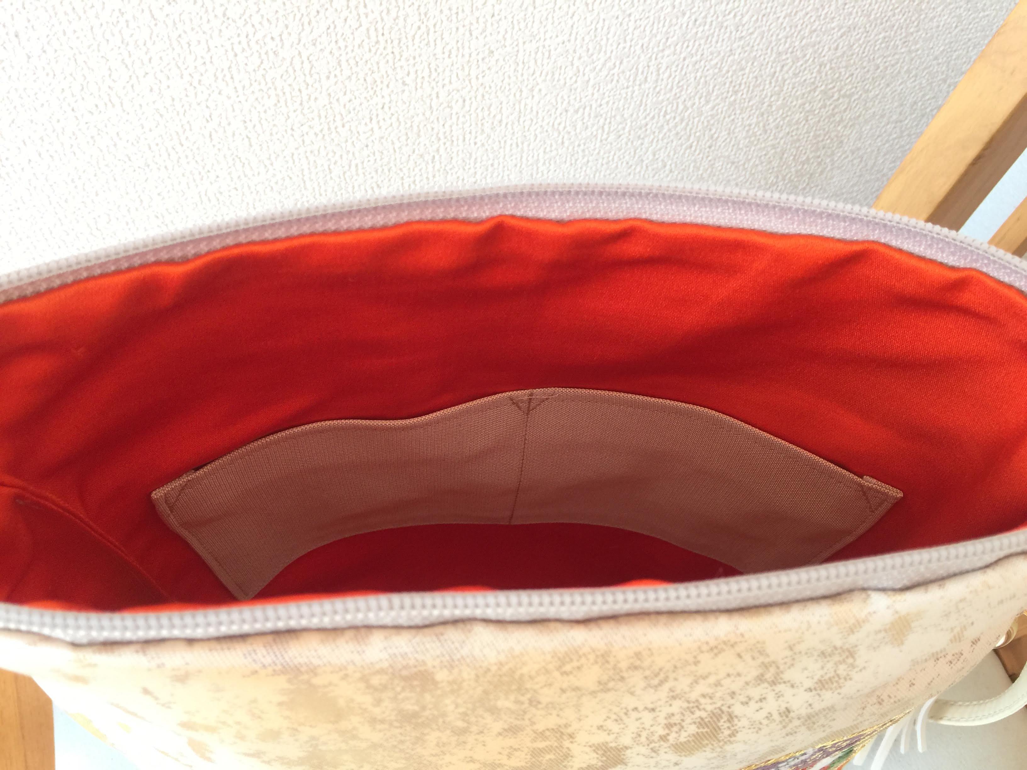 裏地にも帯生地を使用しております。しっかりとした帯生地で製作したバッグですので強度もあり安心。