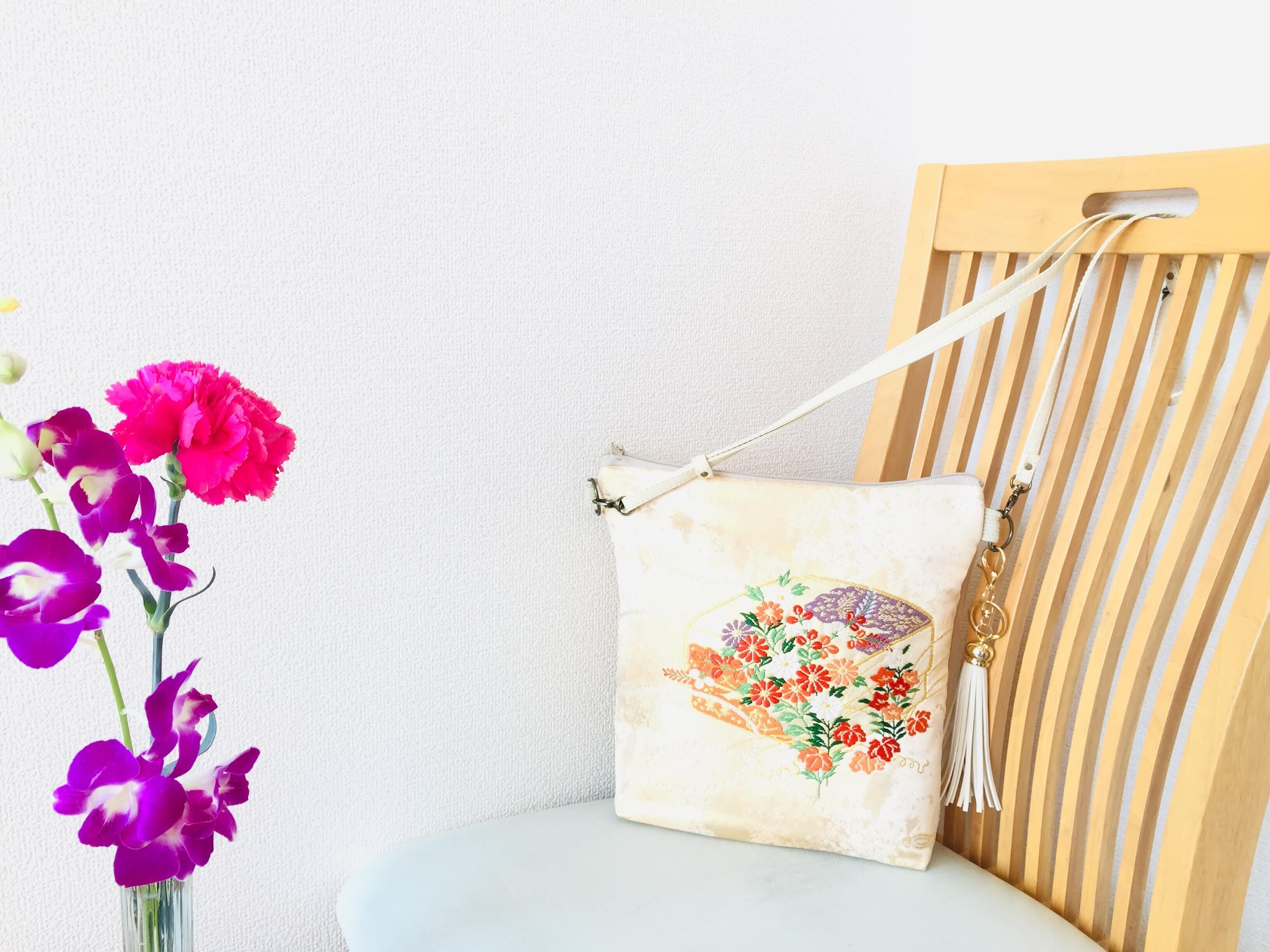 日本の古帯をリメイクして作成したショルダーバッグでハンドメイド品です。 帯リメイクバッグショルダーバッグ斜め掛けバッグ