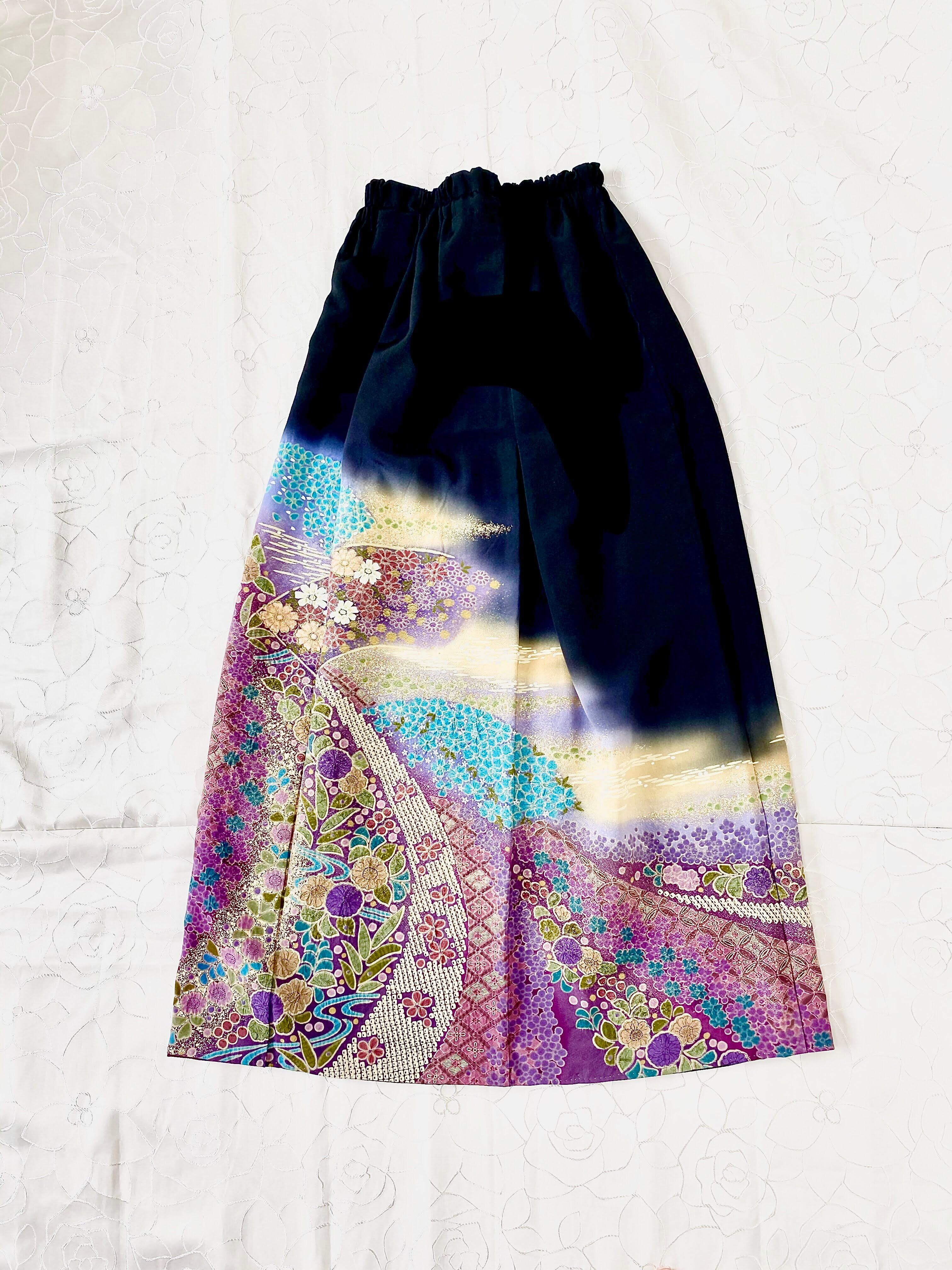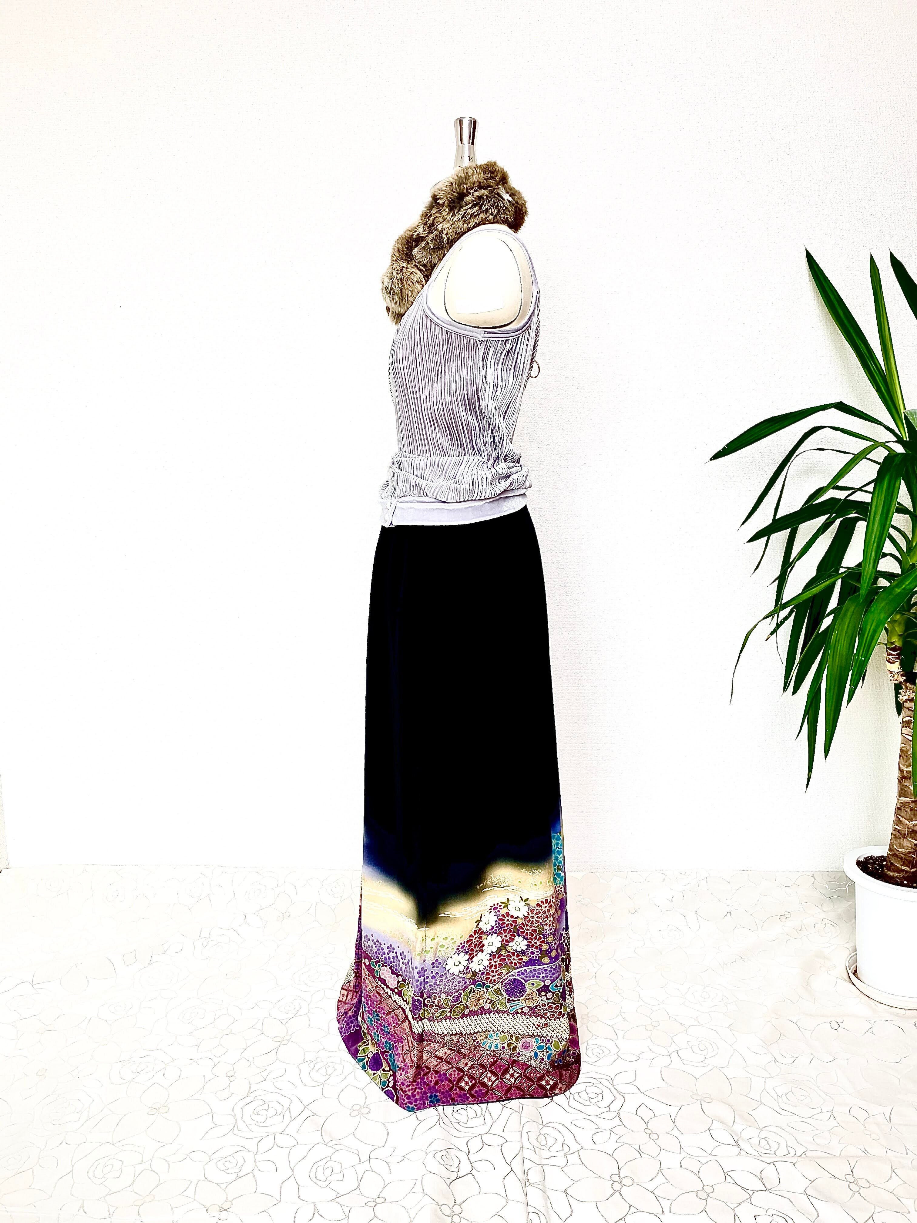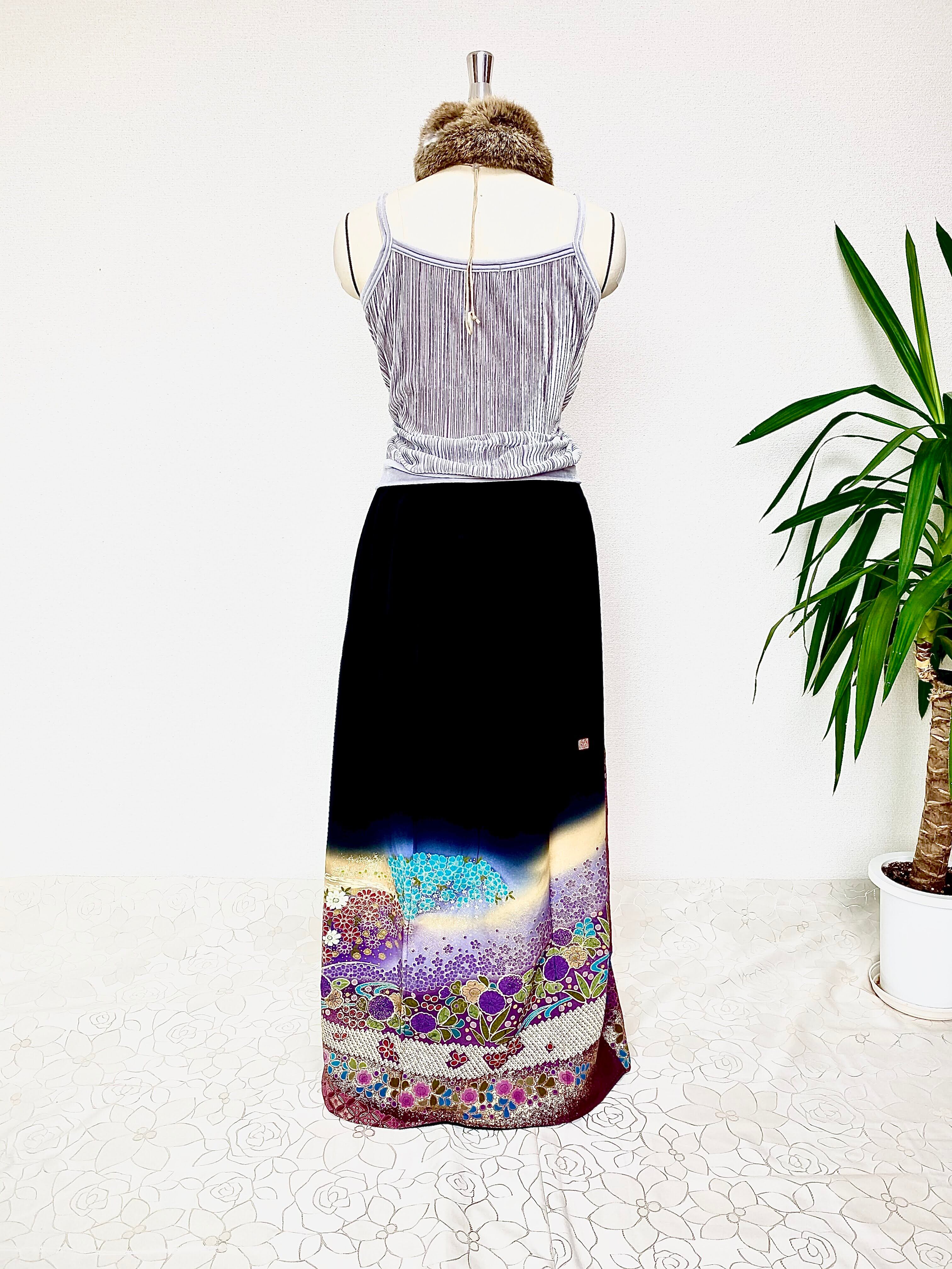 黒留袖着物をリメイクして作製したウエストゴムギャザードレススカート(超ロング丈)です。