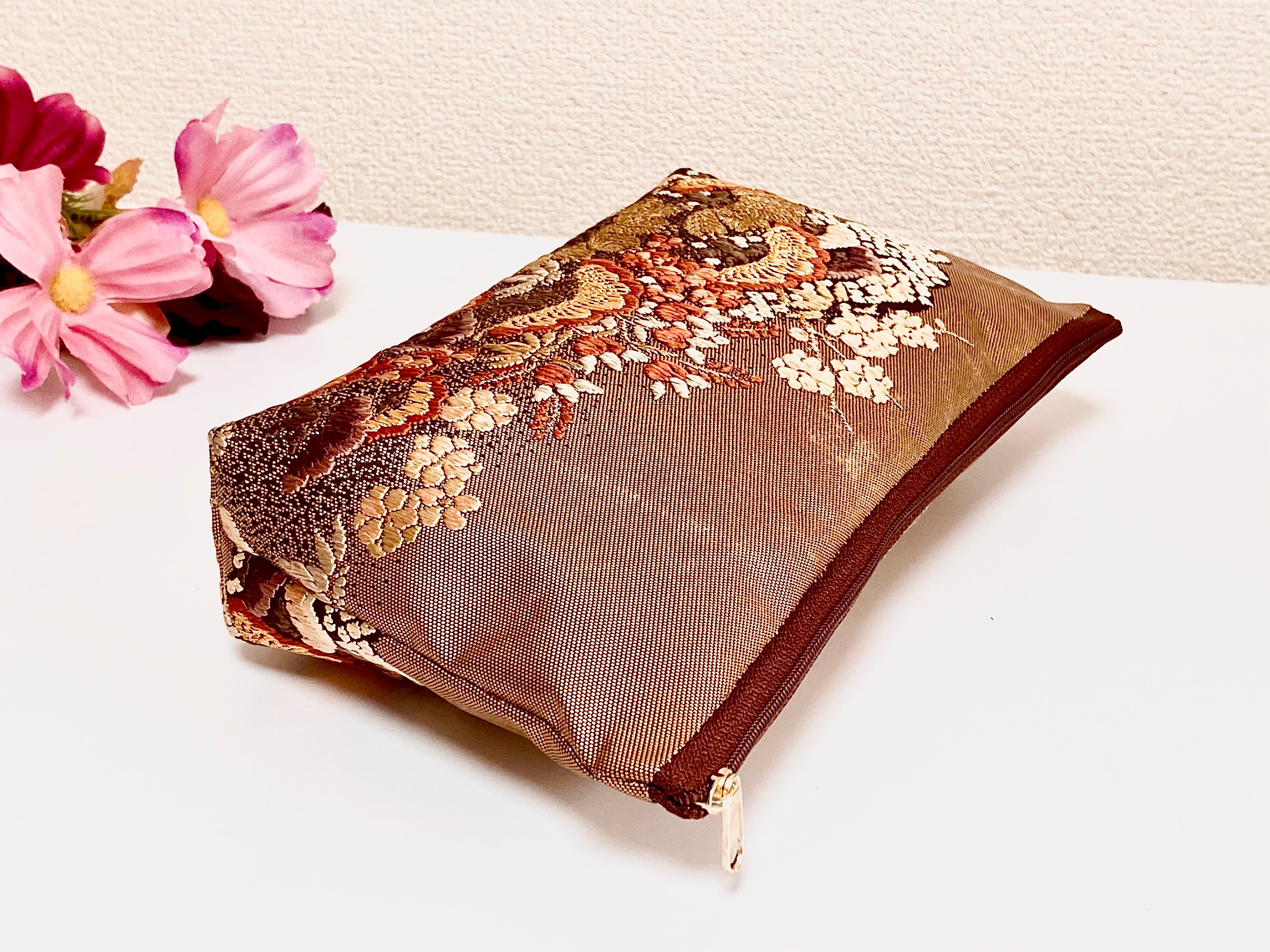 日本の古帯をリメイクして作製したポーチでハンドメイド品です。