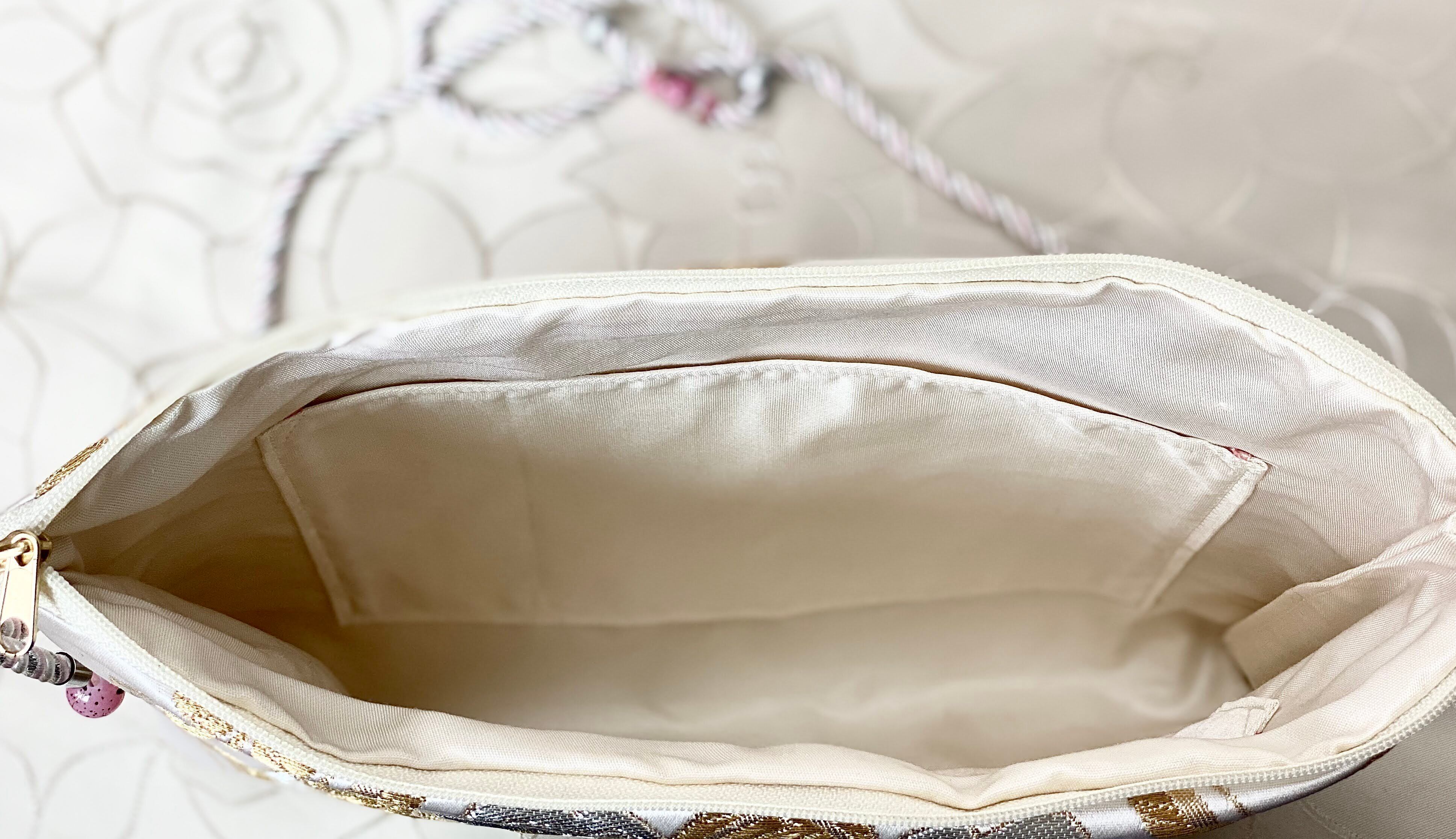 裏地にも帯生地を使用しております。しっかりとした帯生地で製作したバッグですので強度もあり安心。