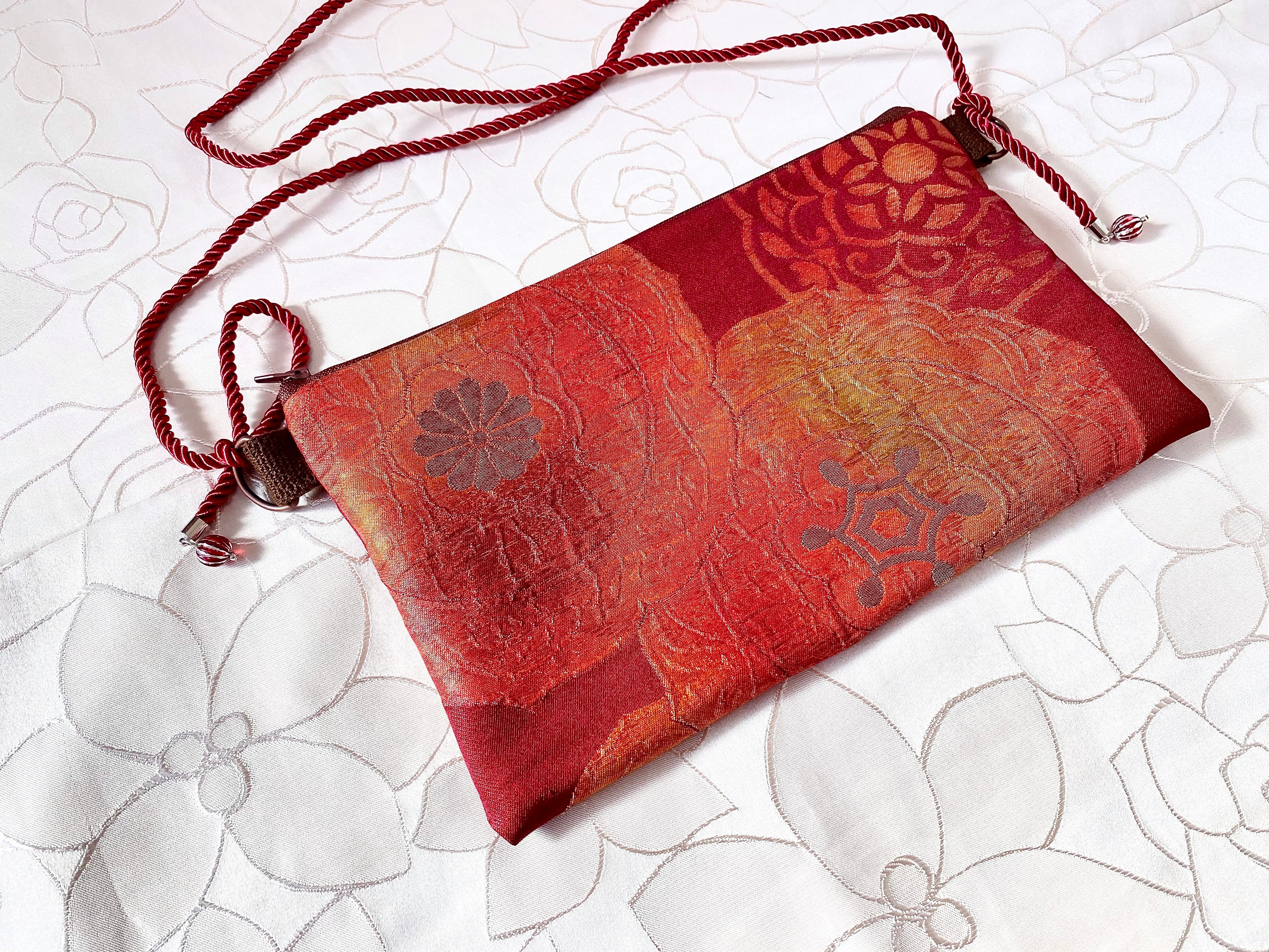 日本の古帯をリメイクして作成したサコッシュでハンドメイド品です。