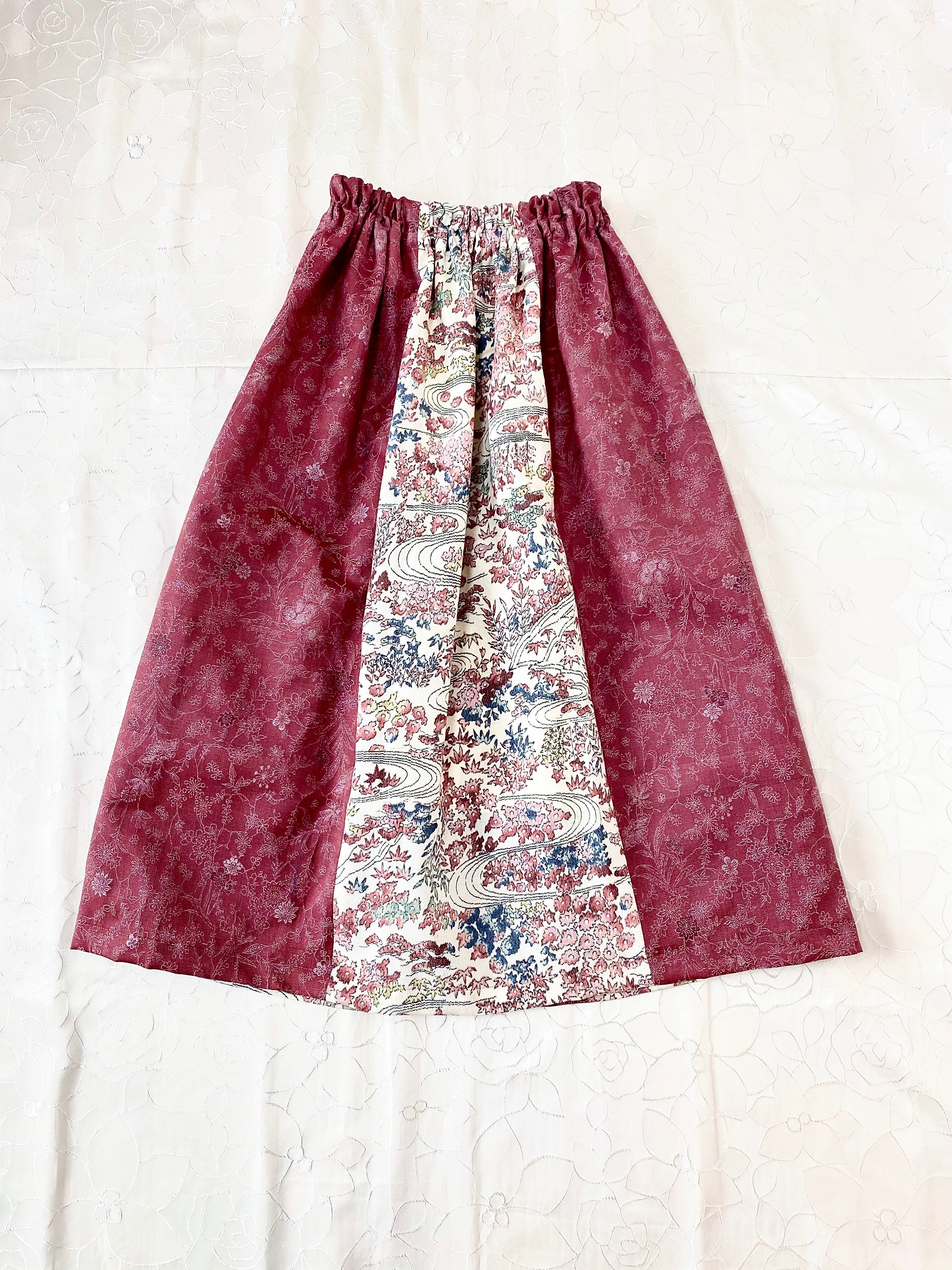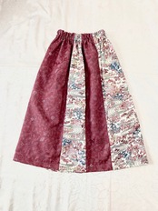 着物をリメイクして作製したウエストゴムギャザードレススカートフリーサイズです。