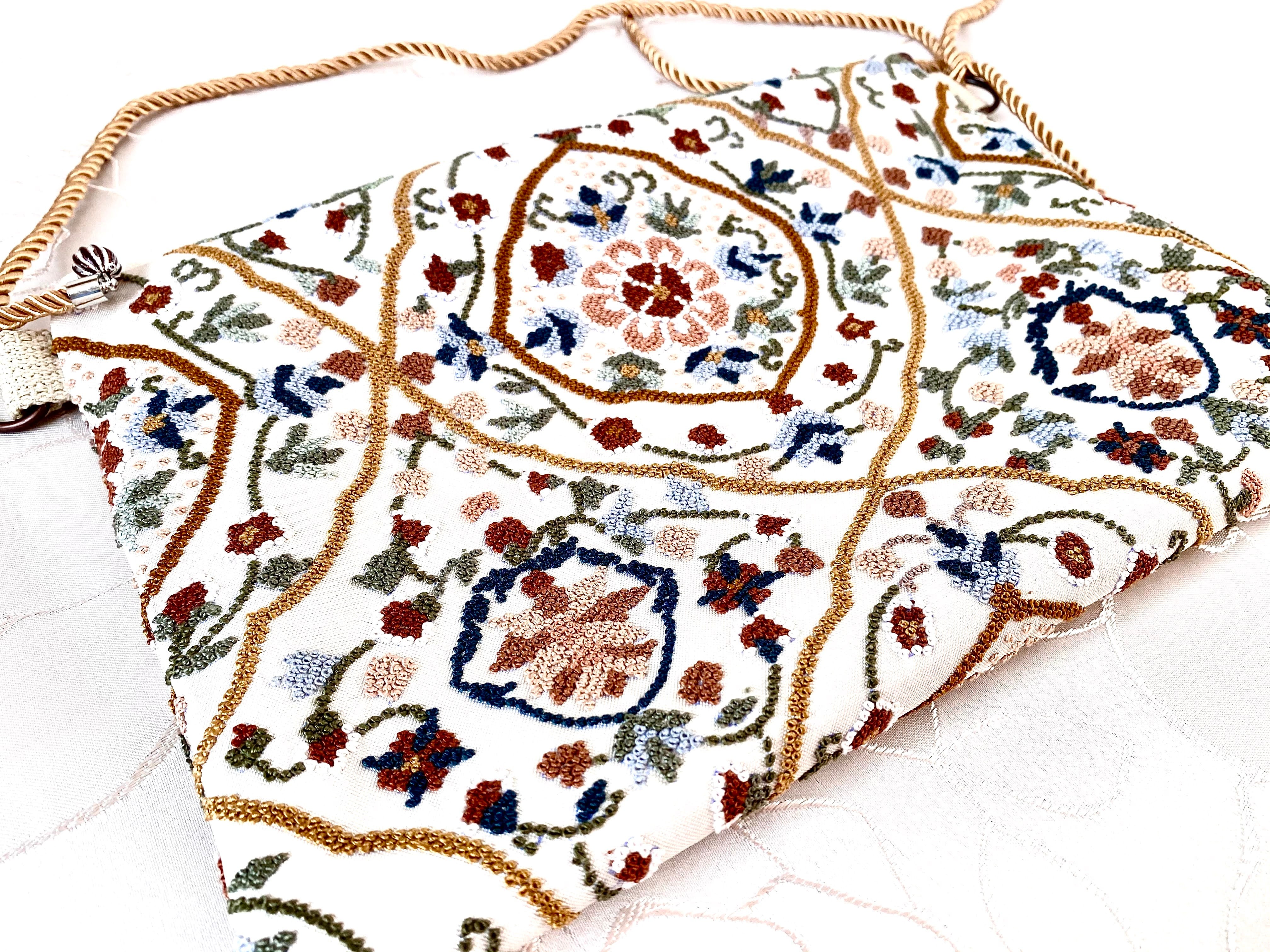 触り心地が滑らかで手にしっくりとくる安心感。絵柄の鮮やかさは日本の帯ならではの存在感で素晴らしく華やかな美しさです。