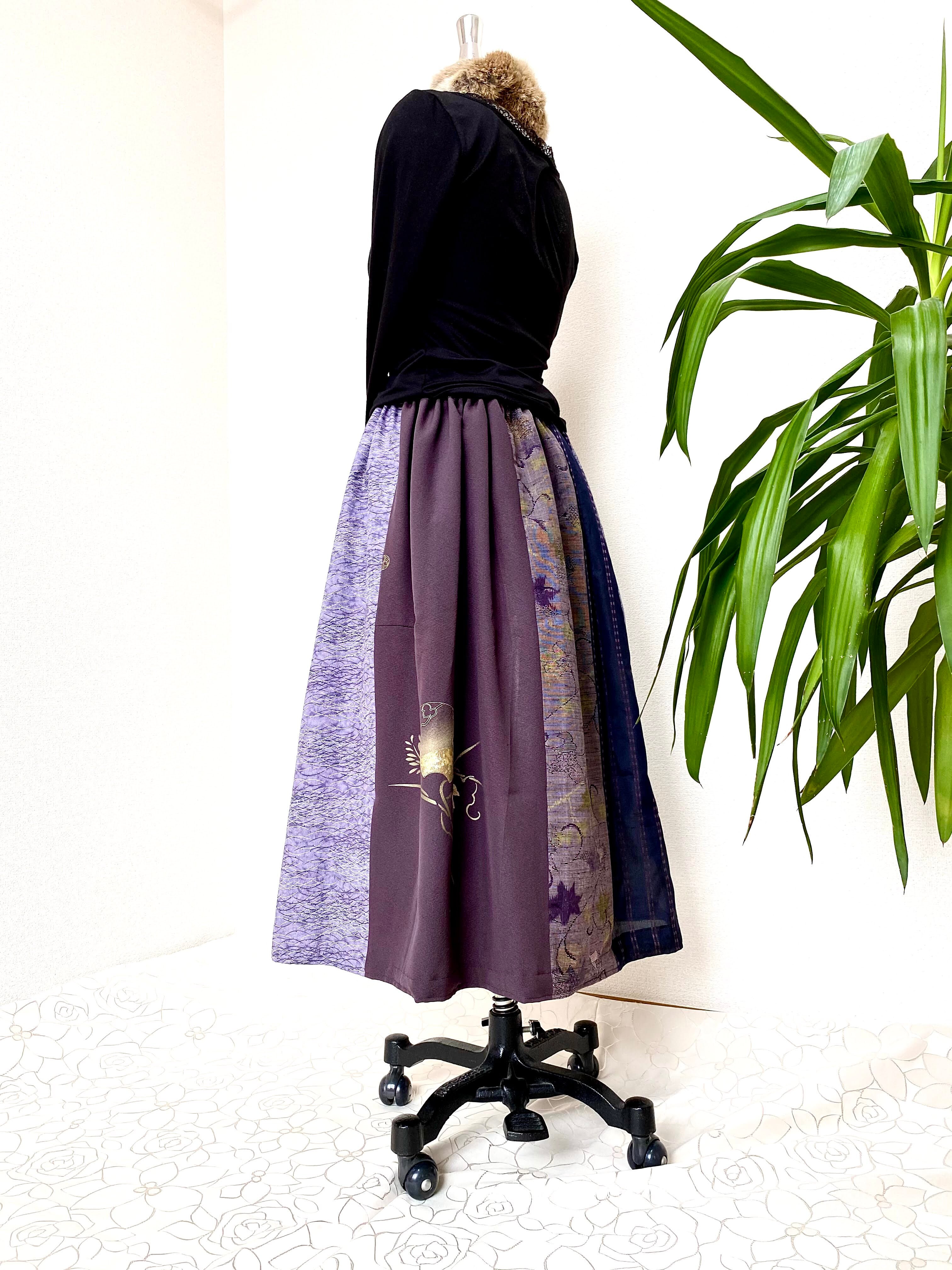 着物をリメイクして作製したウエストゴムギャザードレススカートフリーサイズM~LLです。