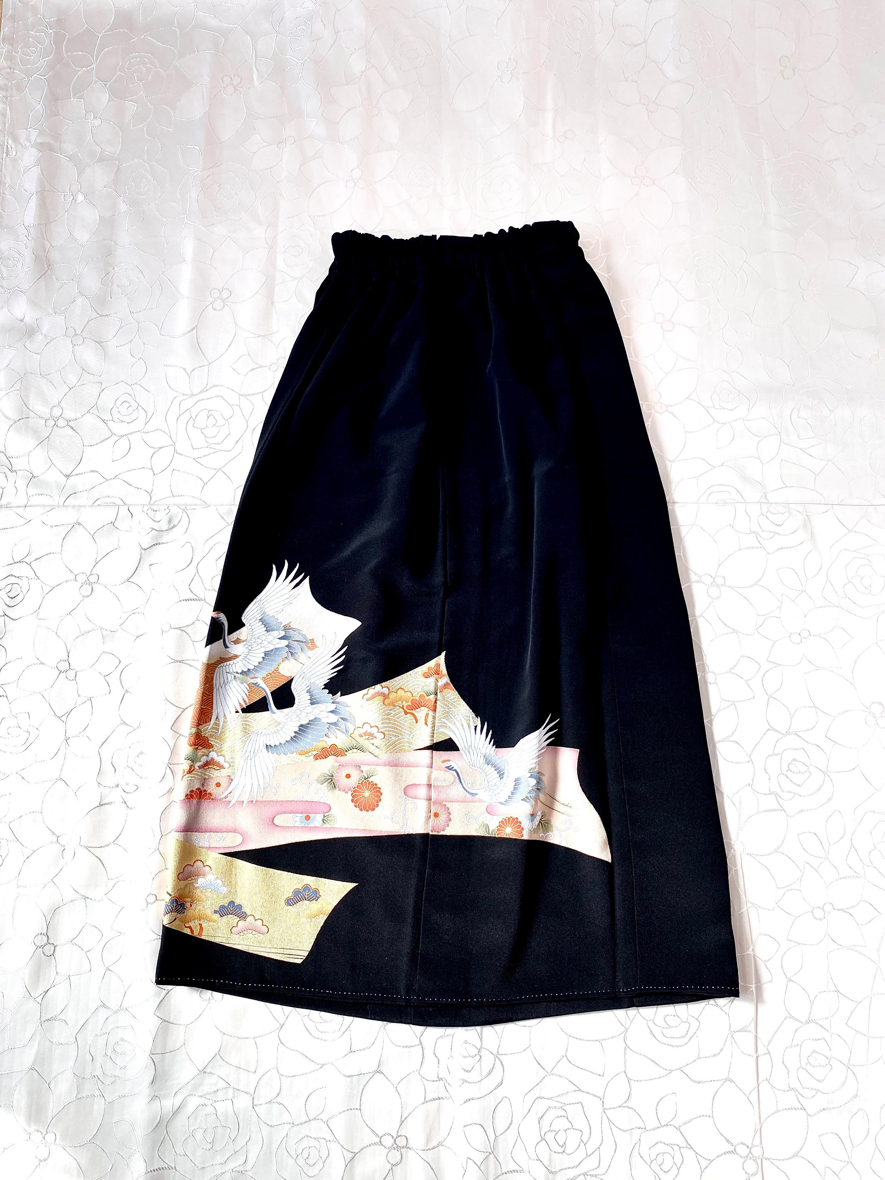 黒留袖着物をリメイクして作製したウエストゴムギャザードレススカートフリーサイズ(超ロング丈)です。