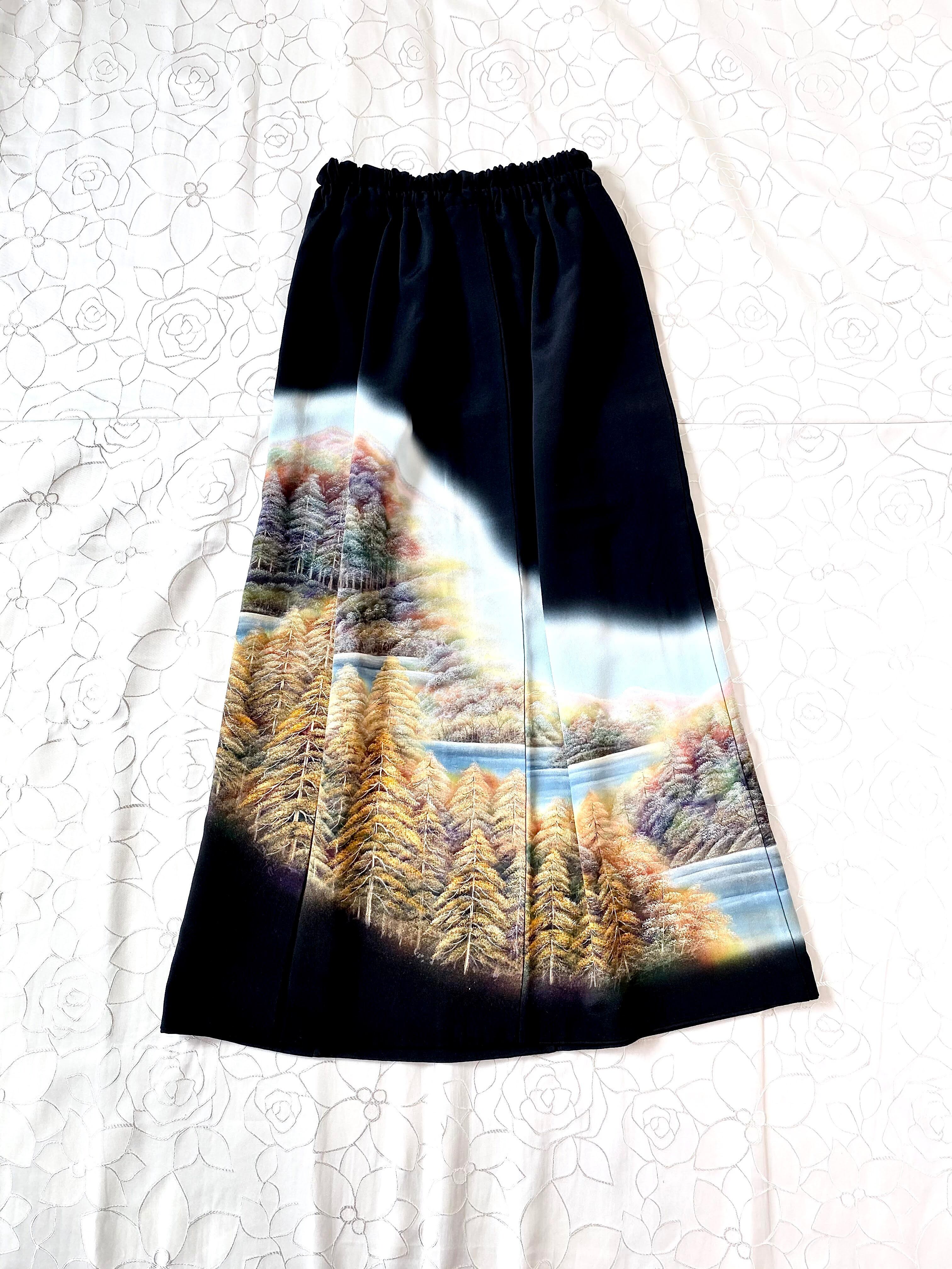 黒留袖着物をリメイクして作製したウエストゴムギャザードレススカートフリーサイズ(超ロング丈)です。