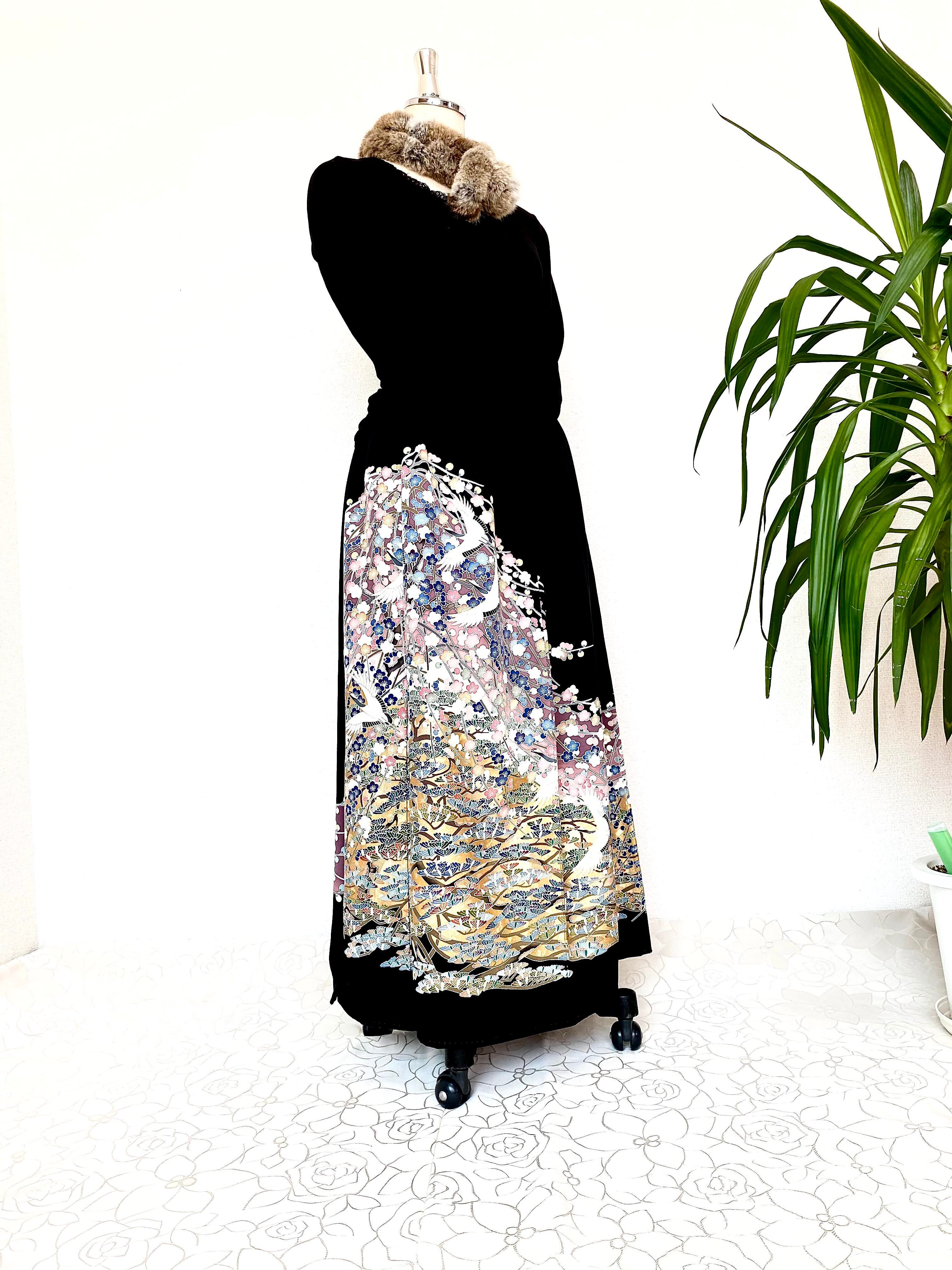 黒留袖着物リメイクウエストゴムギャザードレススカートフリーサイズ