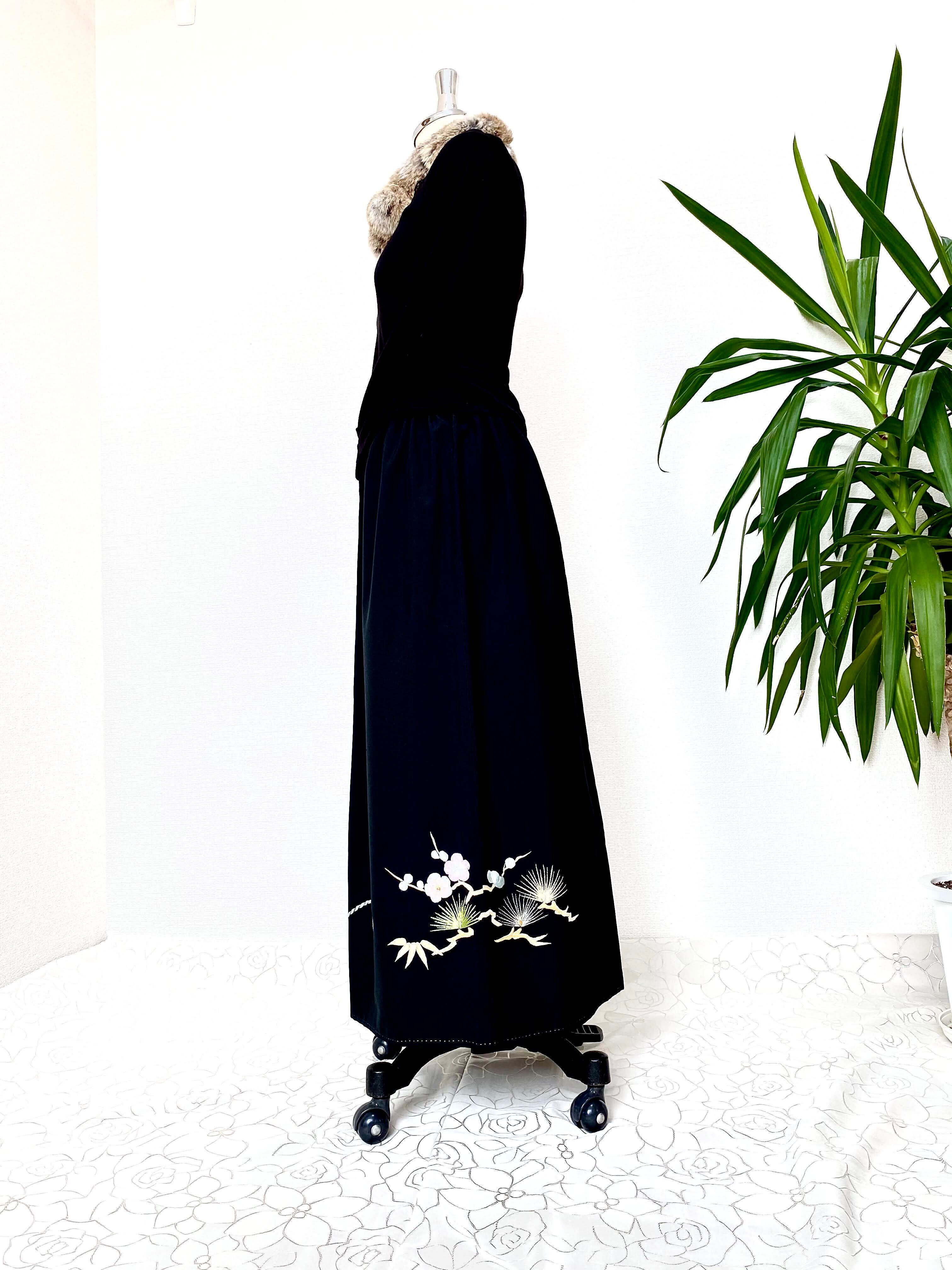 黒留袖着物リメイクウエストゴムスカート送料無料フリーサイズ(おチビさん用)1点物黒留袖着物リメイクウエストゴムギャザースカートハンドメイド黒留袖着物リメイクスカート1点物NO.468
