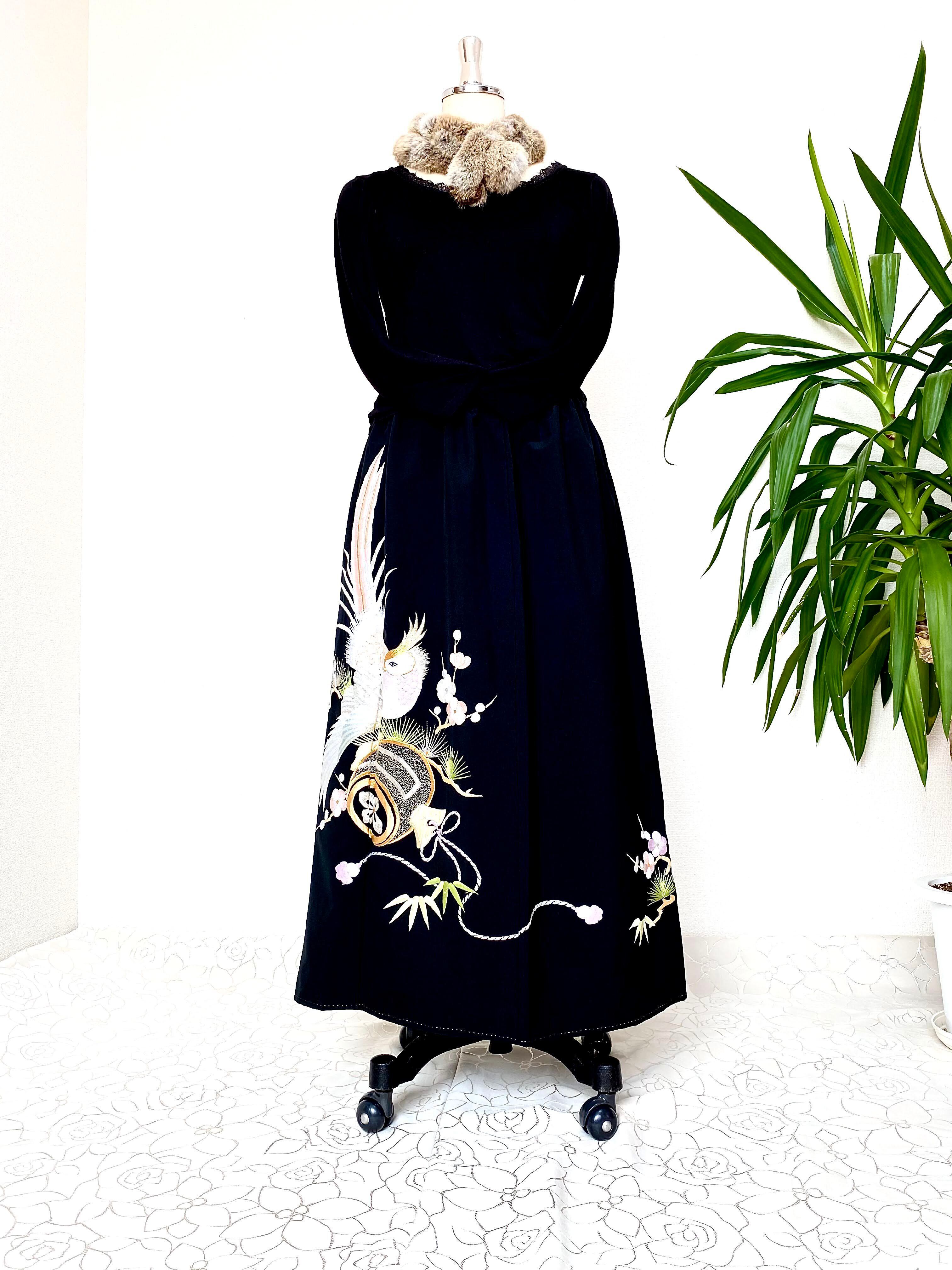 黒留袖着物リメイクウエストゴムギャザードレススカートフリーサイズ(おチビさん用)