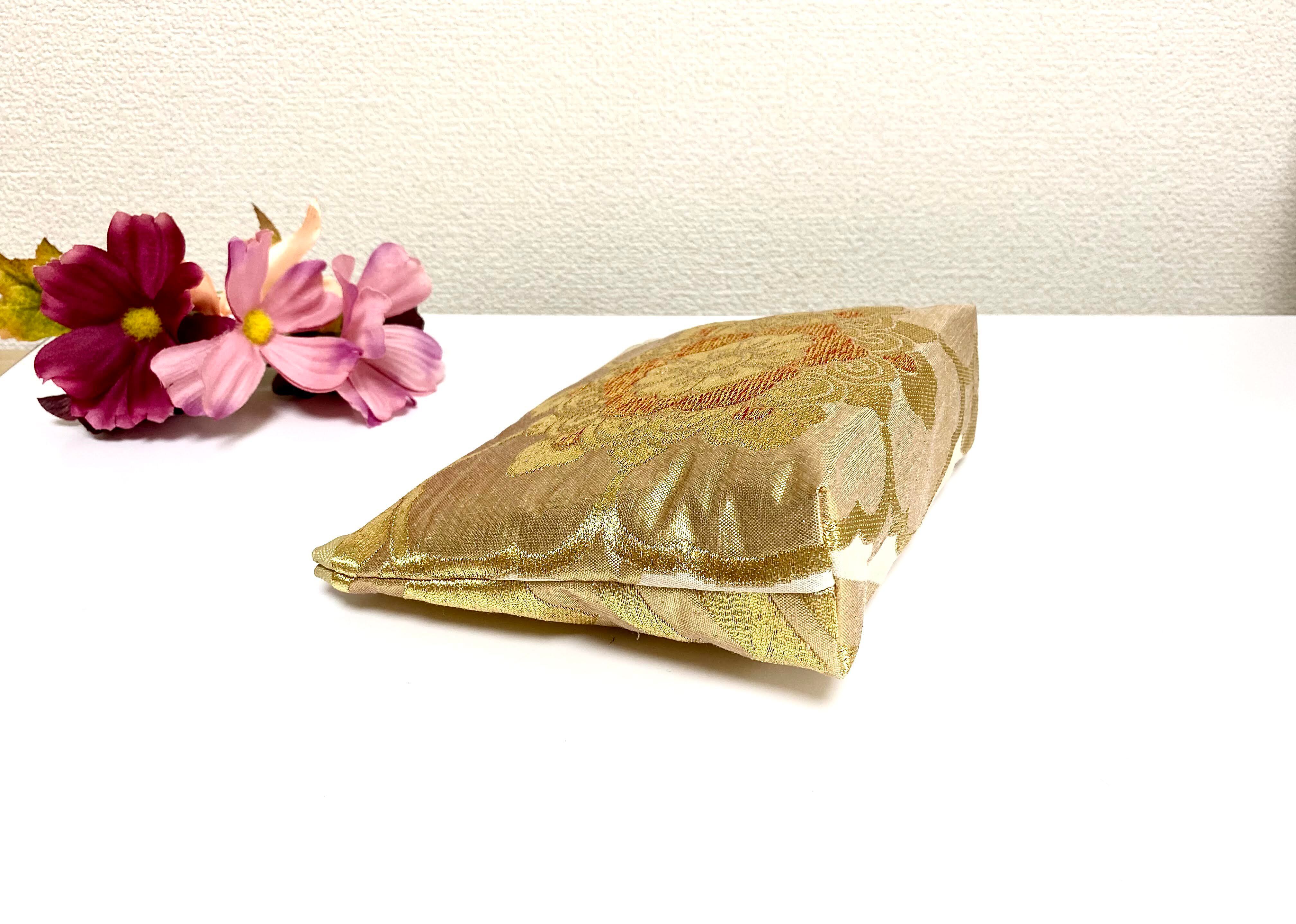 日本の古帯をリメイクして作製したポーチでハンドメイド品です。