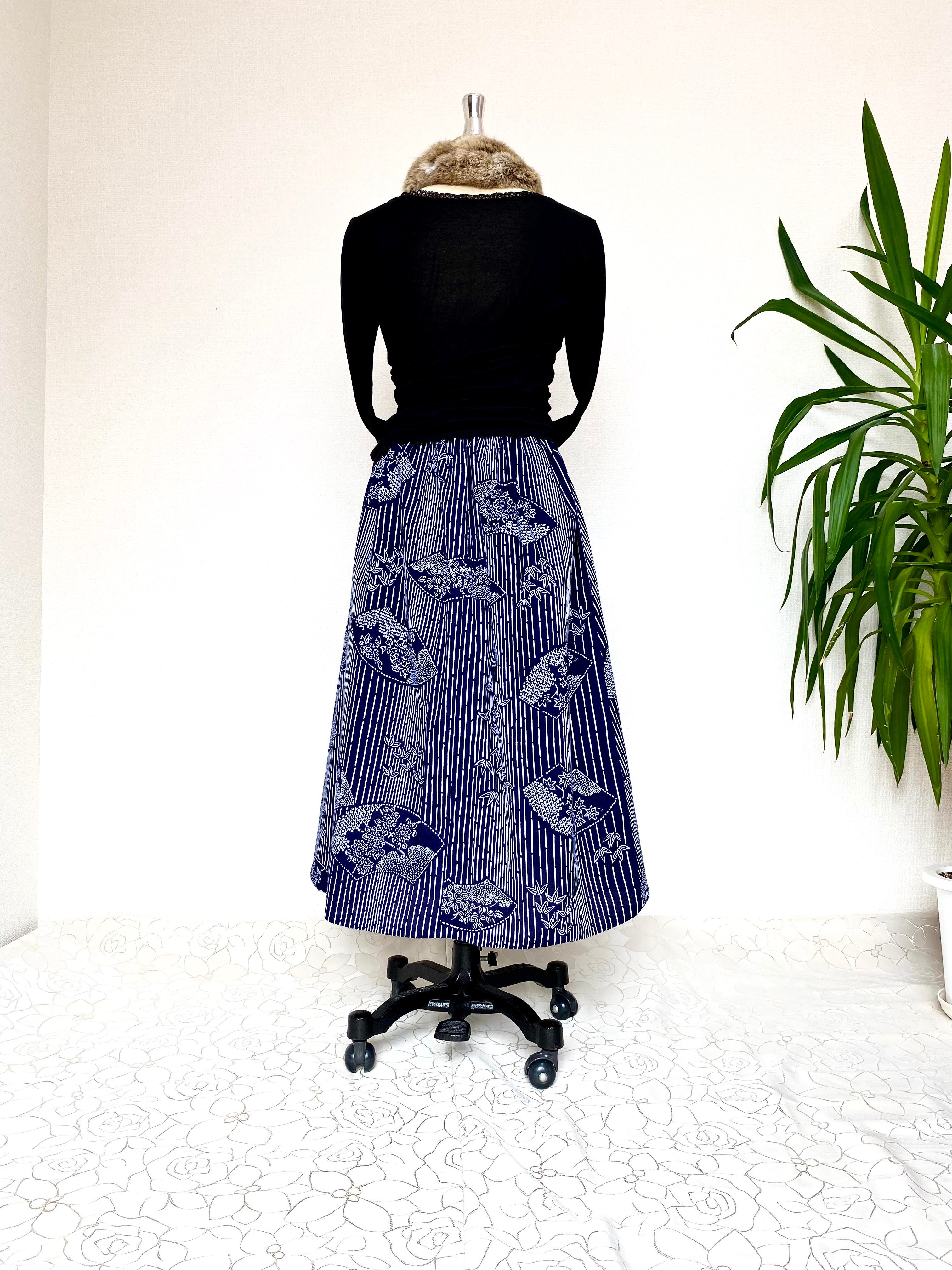 着物リメイクウエストゴムスカート送料無料フリーサイズ1点物着物リメイクウエストゴムギャザースカートハンドメイド着物リメイクスカート1点物NO.532