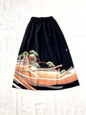 黒留袖着物をリメイクして作製したウエストゴムギャザードレススカートフリーサイズ【超ロング丈】です。
