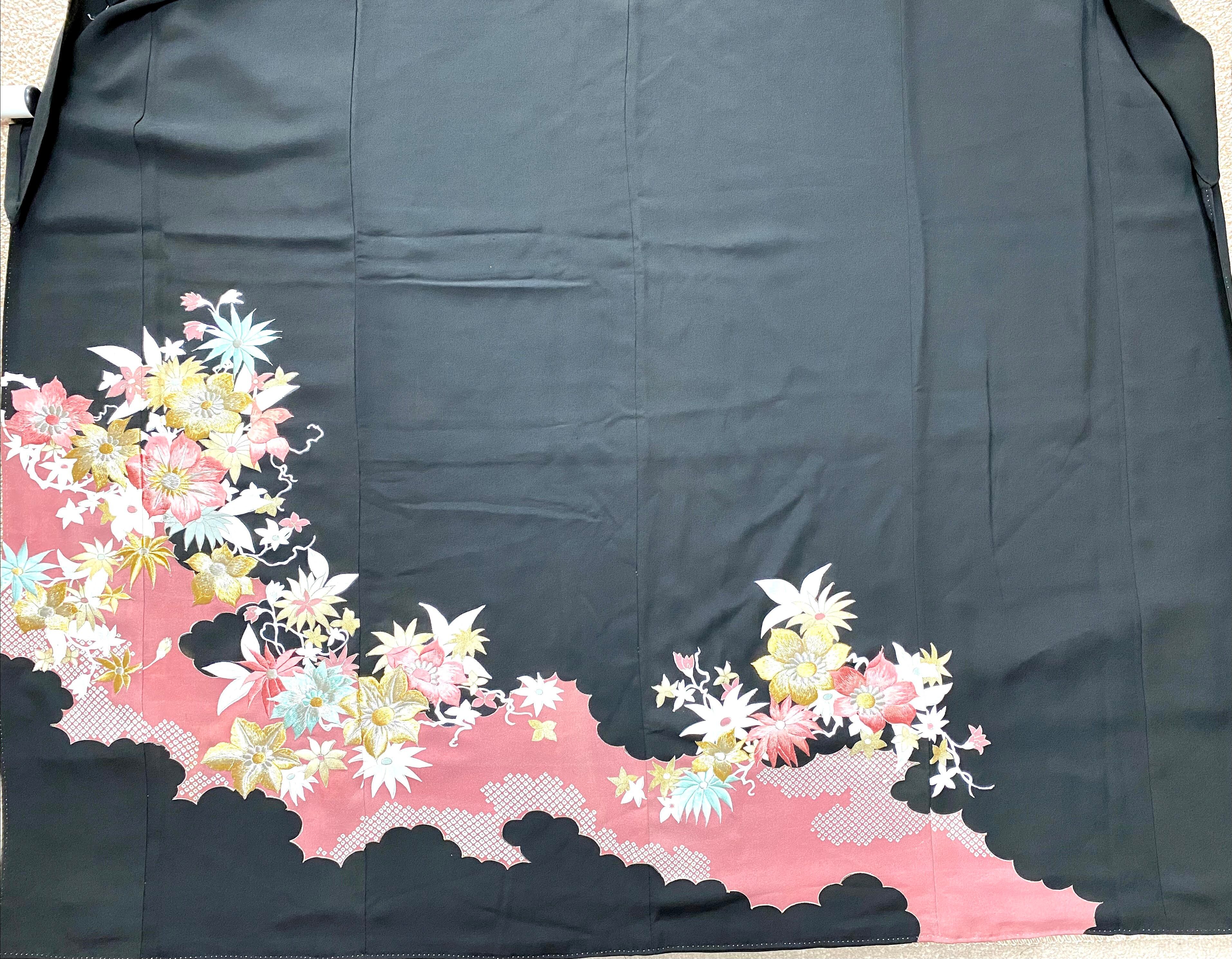 黒留袖着物リメイクウエストゴムスカート送料無料フリーサイズ1点物黒留袖着物リメイクウエストゴムギャザースカートハンドメイド黒留袖着物リメイクスカート1点物NO.563