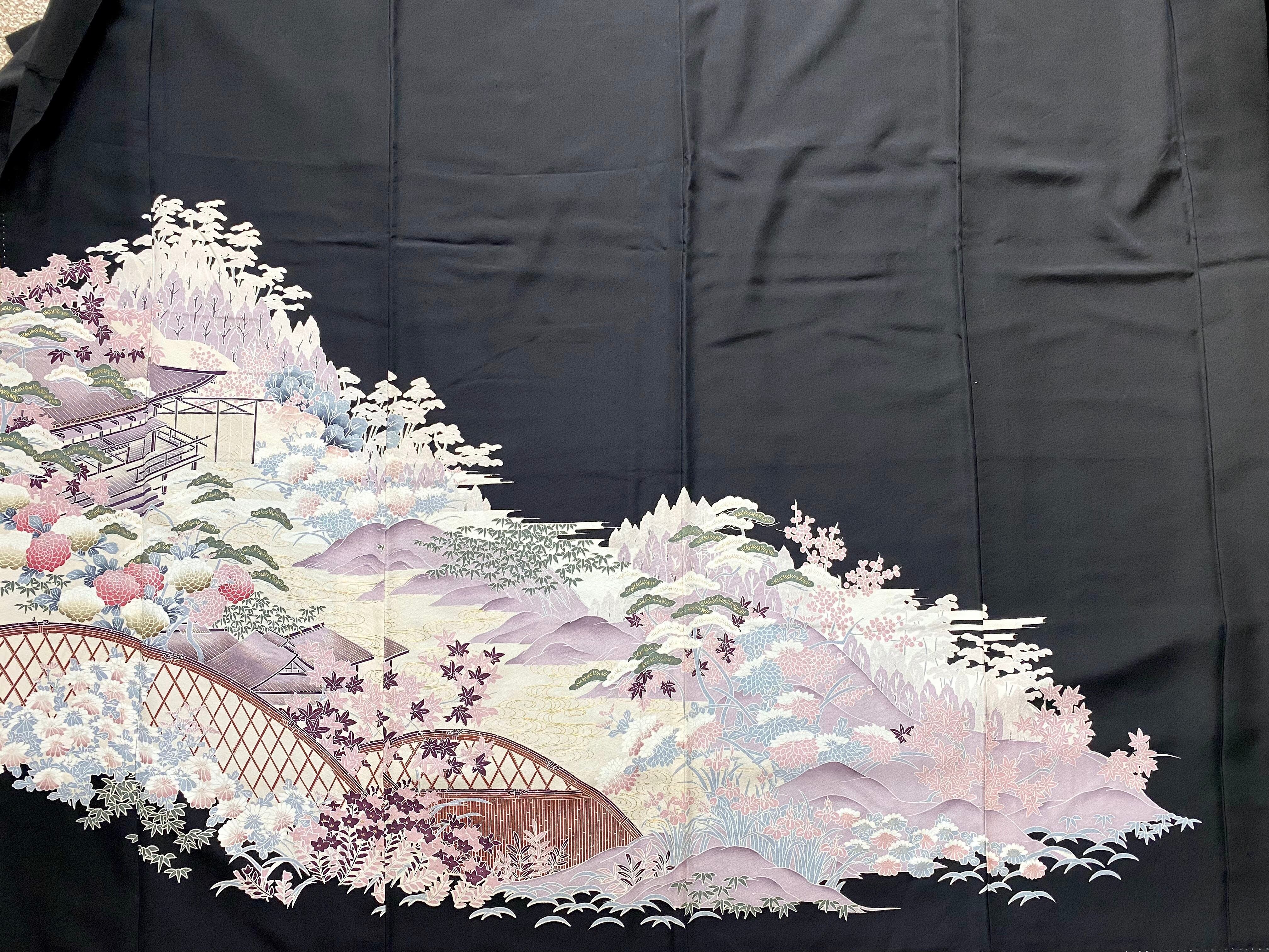 黒留袖着物リメイクウエストゴムスカート【超ロング丈】送料無料フリーサイズ1点物黒留袖着物リメイクウエストゴムスカート【超ロング丈】ハンドメイド黒留袖着物リメイクスカート1点物NO.594
