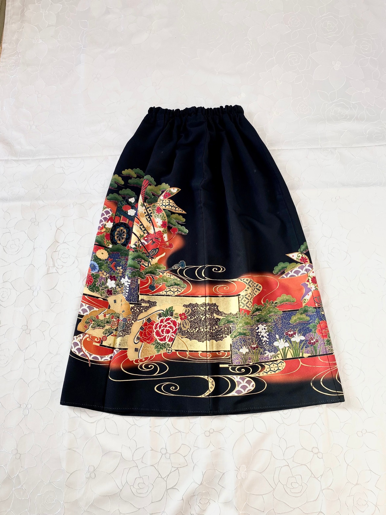 黒留袖着物をリメイクして作製したウエストゴムギャザードレススカートフリーサイズです。