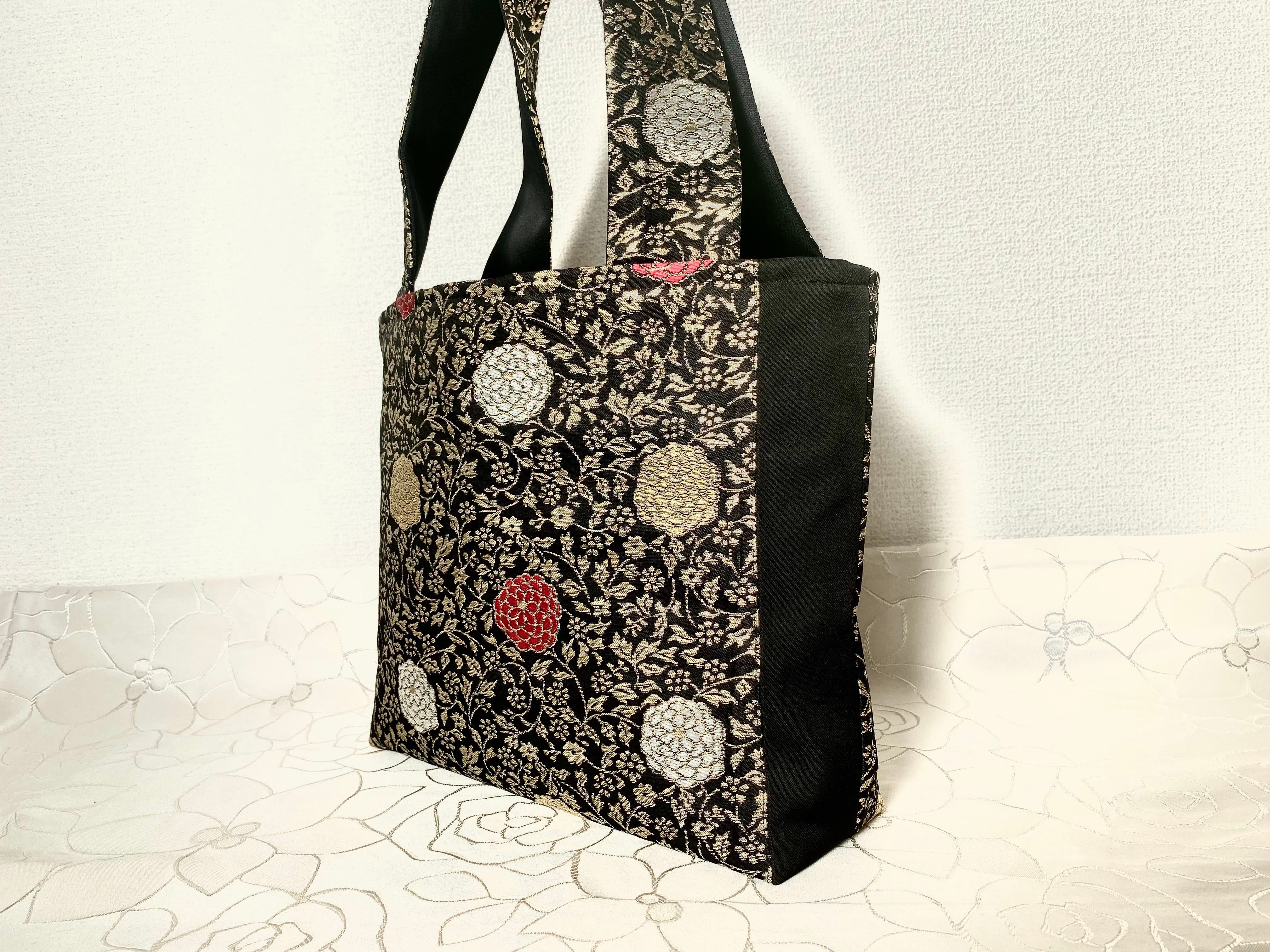 日本の古帯をリメイクして作成したショルダーバッグトートバッグでハンドメイド品です。