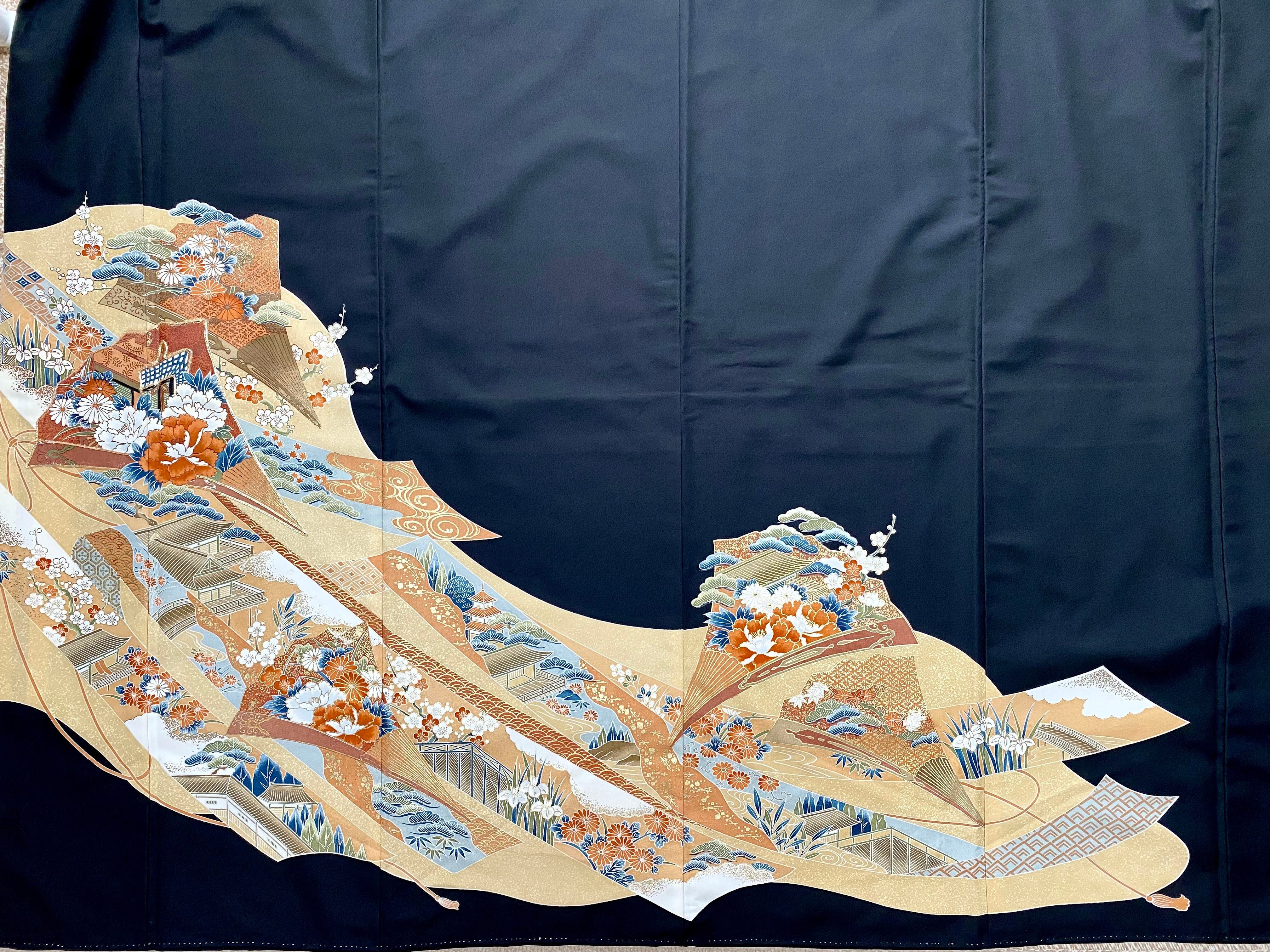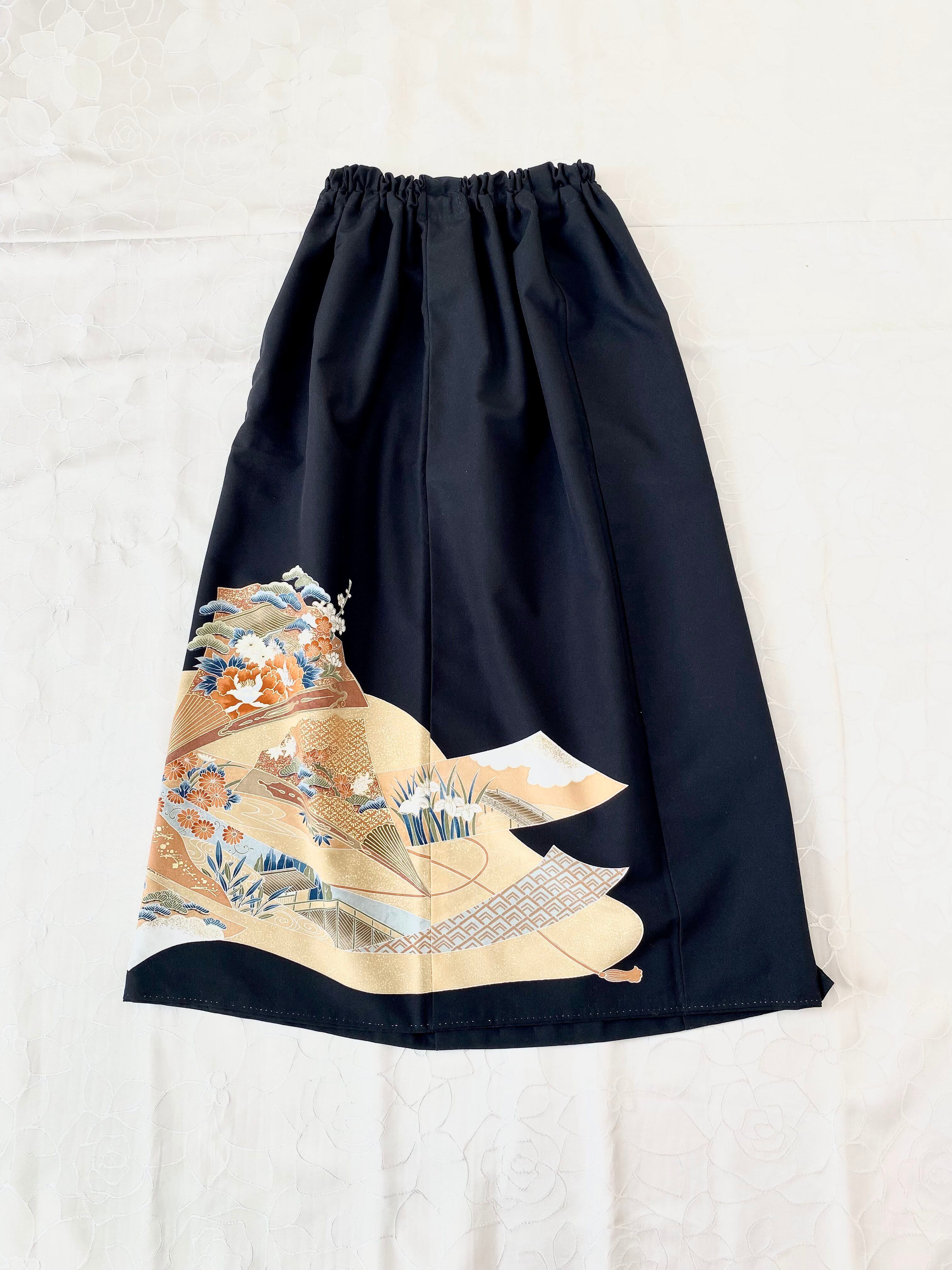 黒留袖着物リメイクウエストゴムスカート送料無料フリーサイズ1点物黒留袖着物リメイクウエストゴムスカートハンドメイド黒留袖着物リメイクスカート1点物NO.618