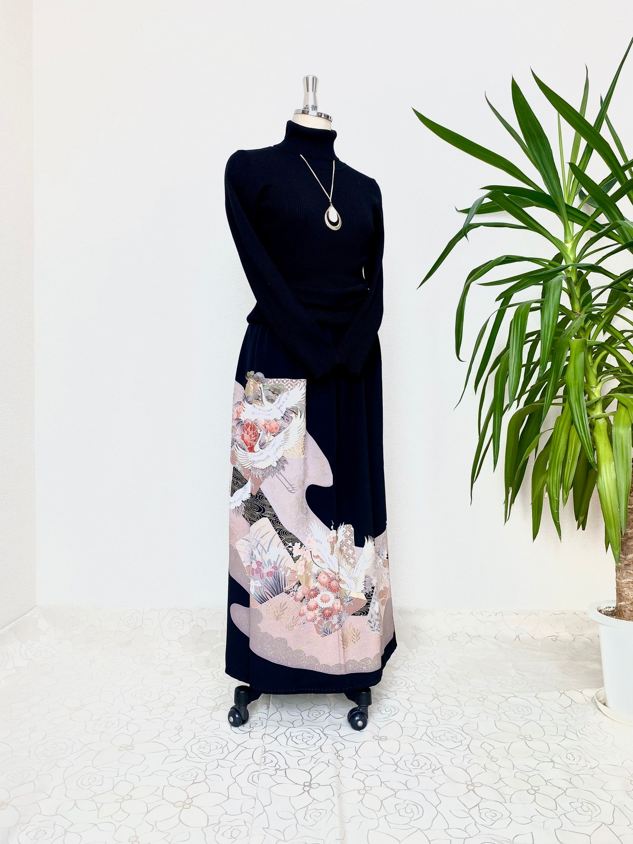黒留袖着物リメイクウエストゴムスカートフリーサイズ