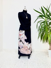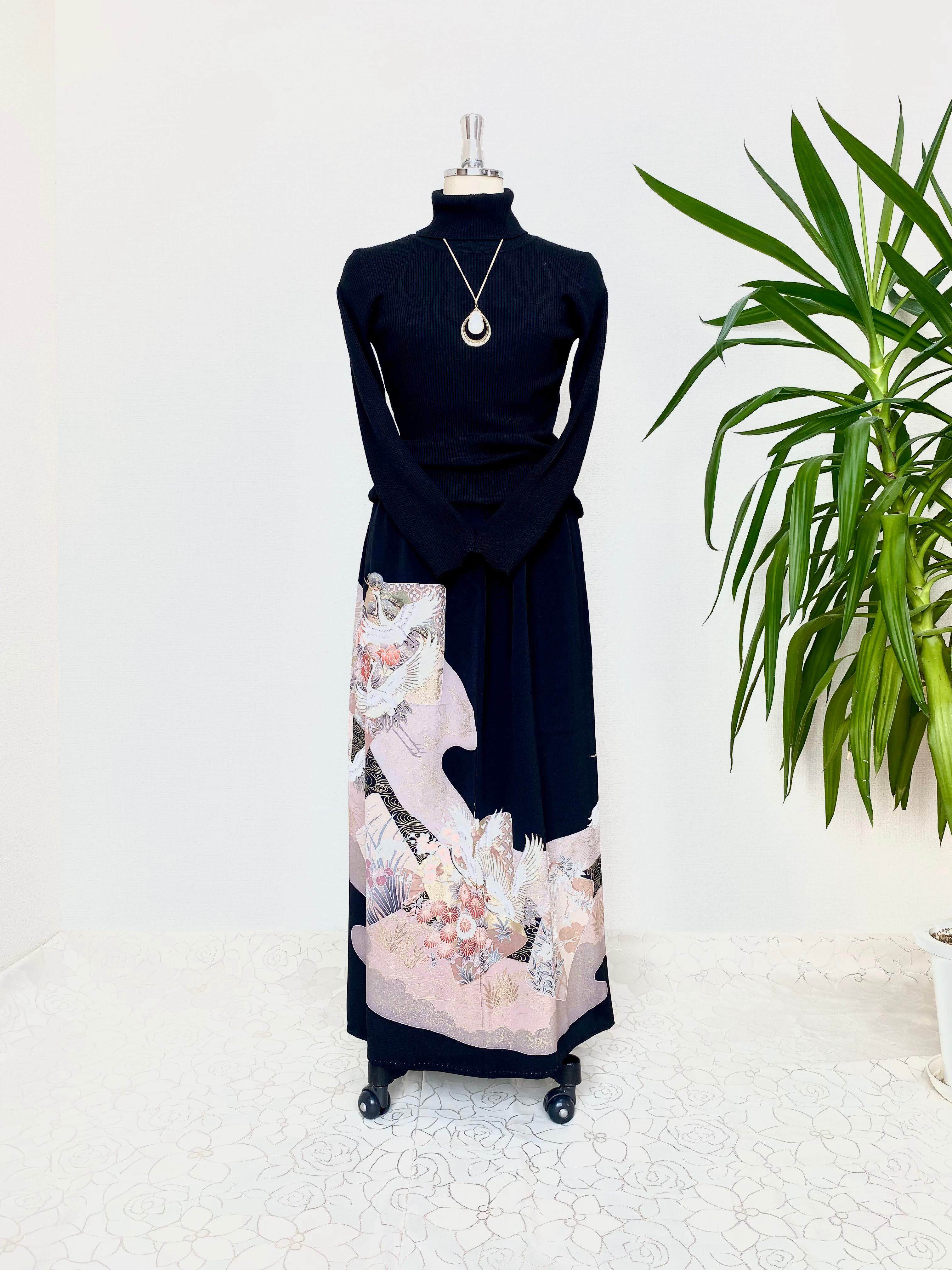 黒留袖着物リメイクウエストゴムスカート送料無料フリーサイズ1点物黒留袖着物リメイクウエストゴムスカートハンドメイド黒留袖着物リメイクスカート1点物NO.623