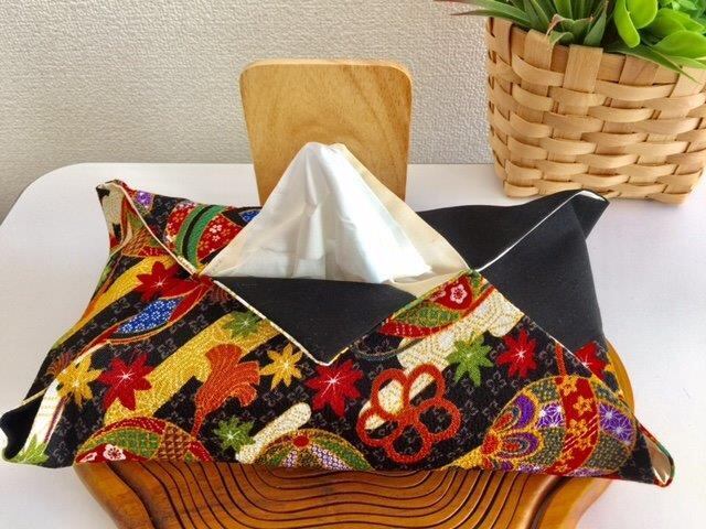 着物や帯の生地をリメイクして作製したBOXティッシュカバーです