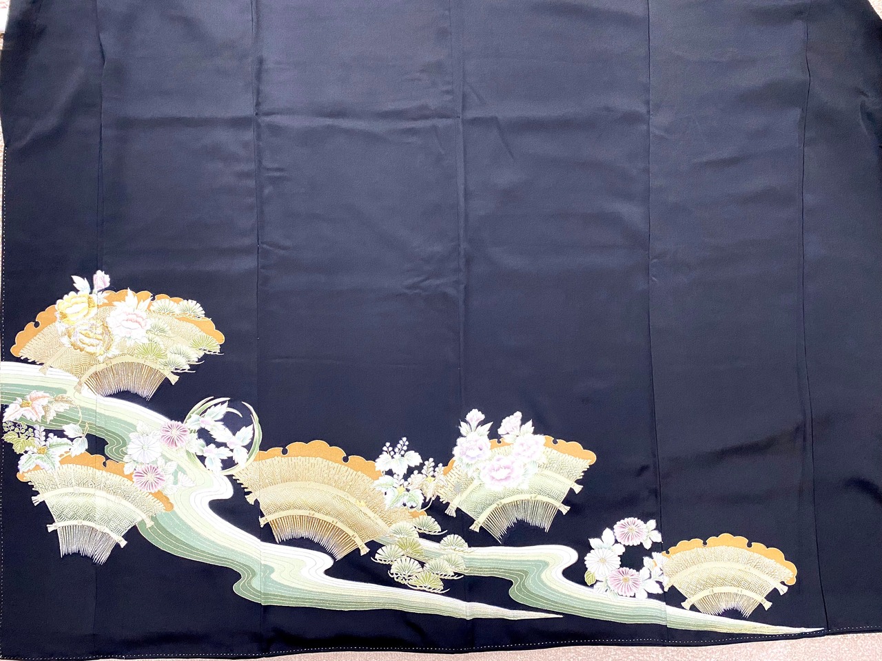 黒留袖着物リメイクウエストゴムスカートフリーサイズ