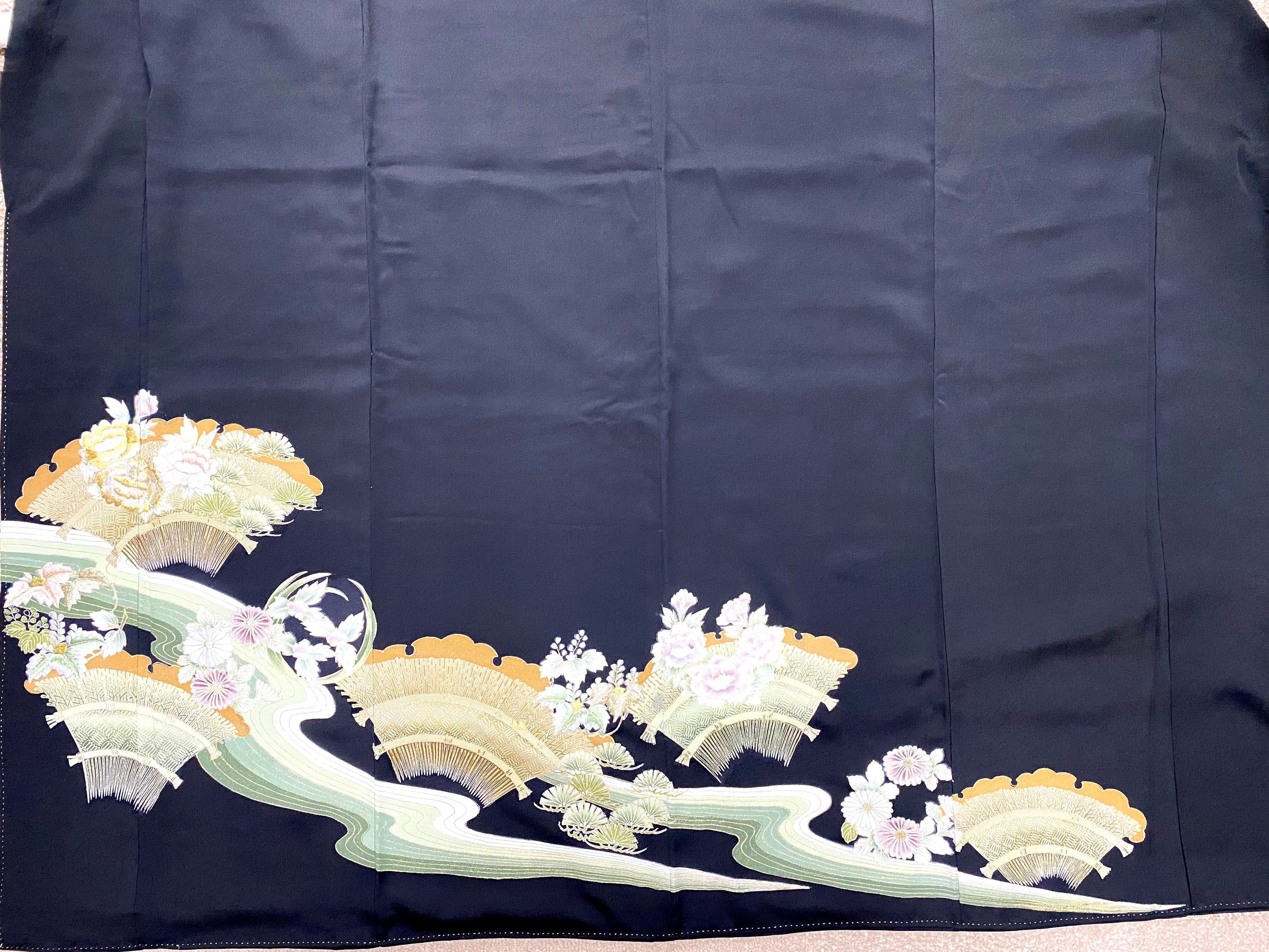 黒留袖着物リメイクウエストゴムスカート送料無料フリーサイズ1点物黒留袖着物リメイクウエストゴムスカートハンドメイド黒留袖着物リメイクスカート1点物NO.628
