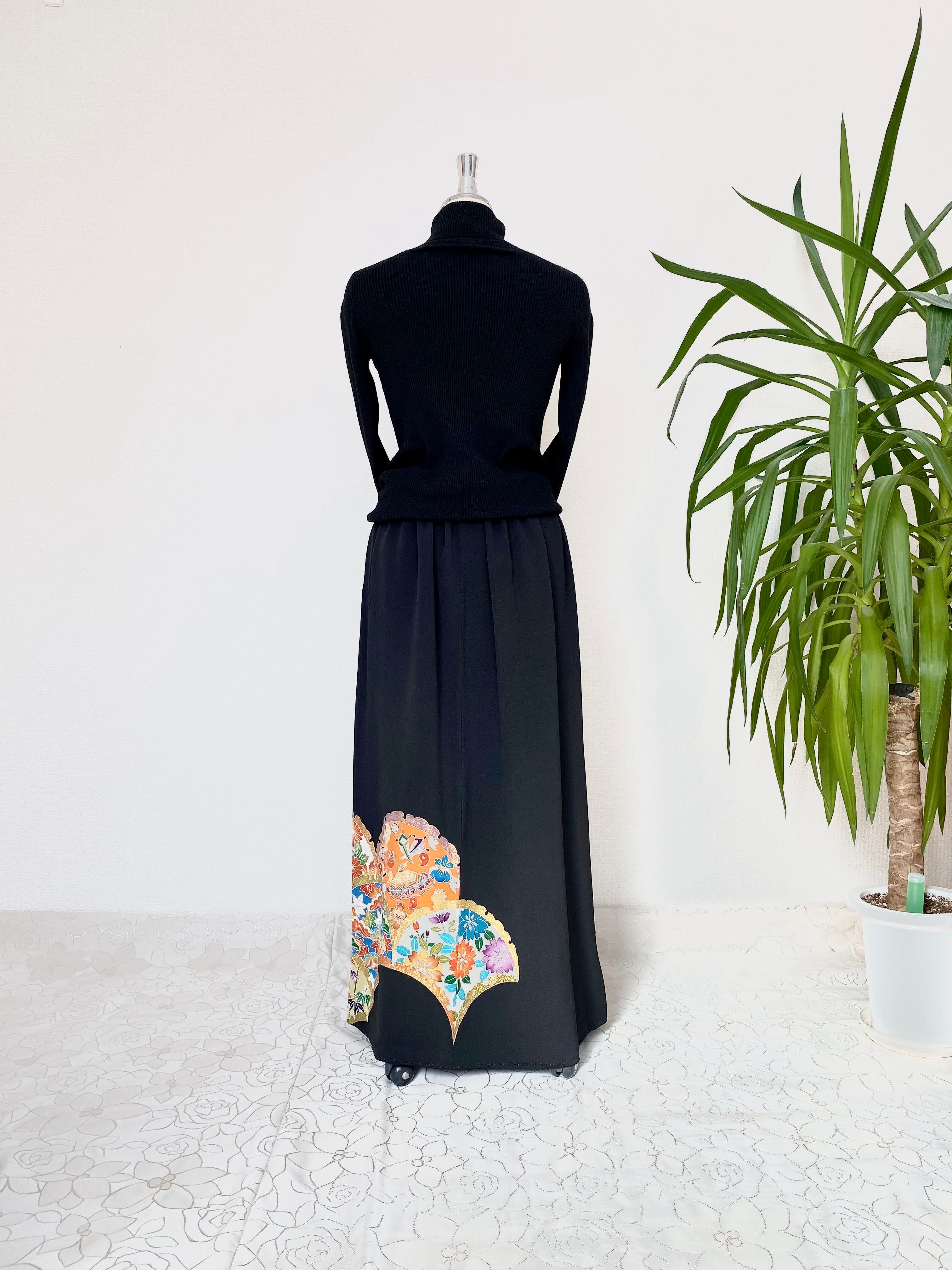 黒留袖着物リメイクウエストゴムスカート【超ロング丈】送料無料フリーサイズ1点物黒留袖着物リメイクウエストゴムスカート【超ロング丈】ハンドメイド黒留袖着物リメイクスカート1点物NO.640