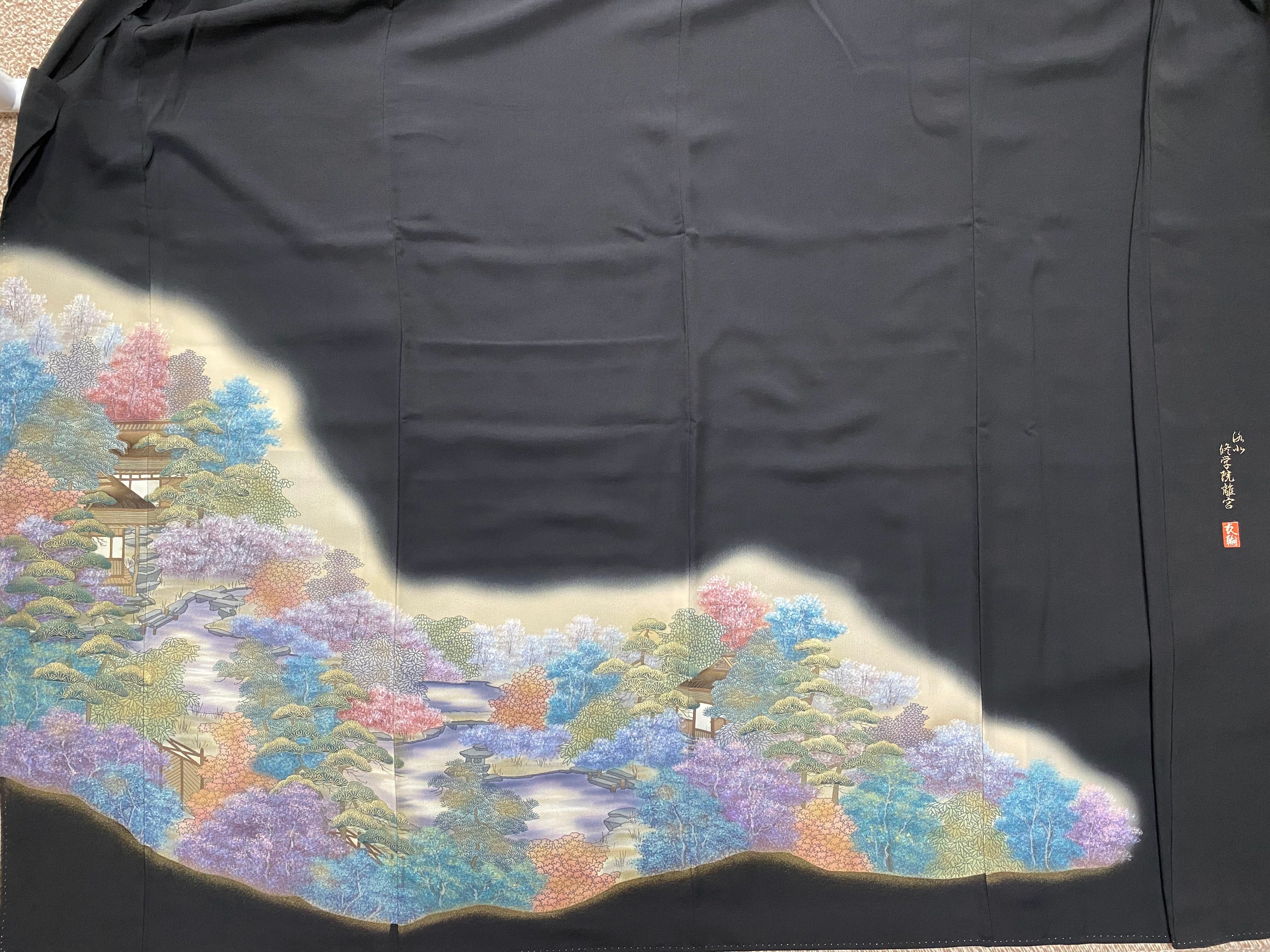 黒留袖着物リメイクウエストゴムスカート正絹送料無料フリーサイズ1点物黒留袖着物リメイクウエストゴムスカート正絹ハンドメイド黒留袖着物リメイクスカート正絹1点物NO.650