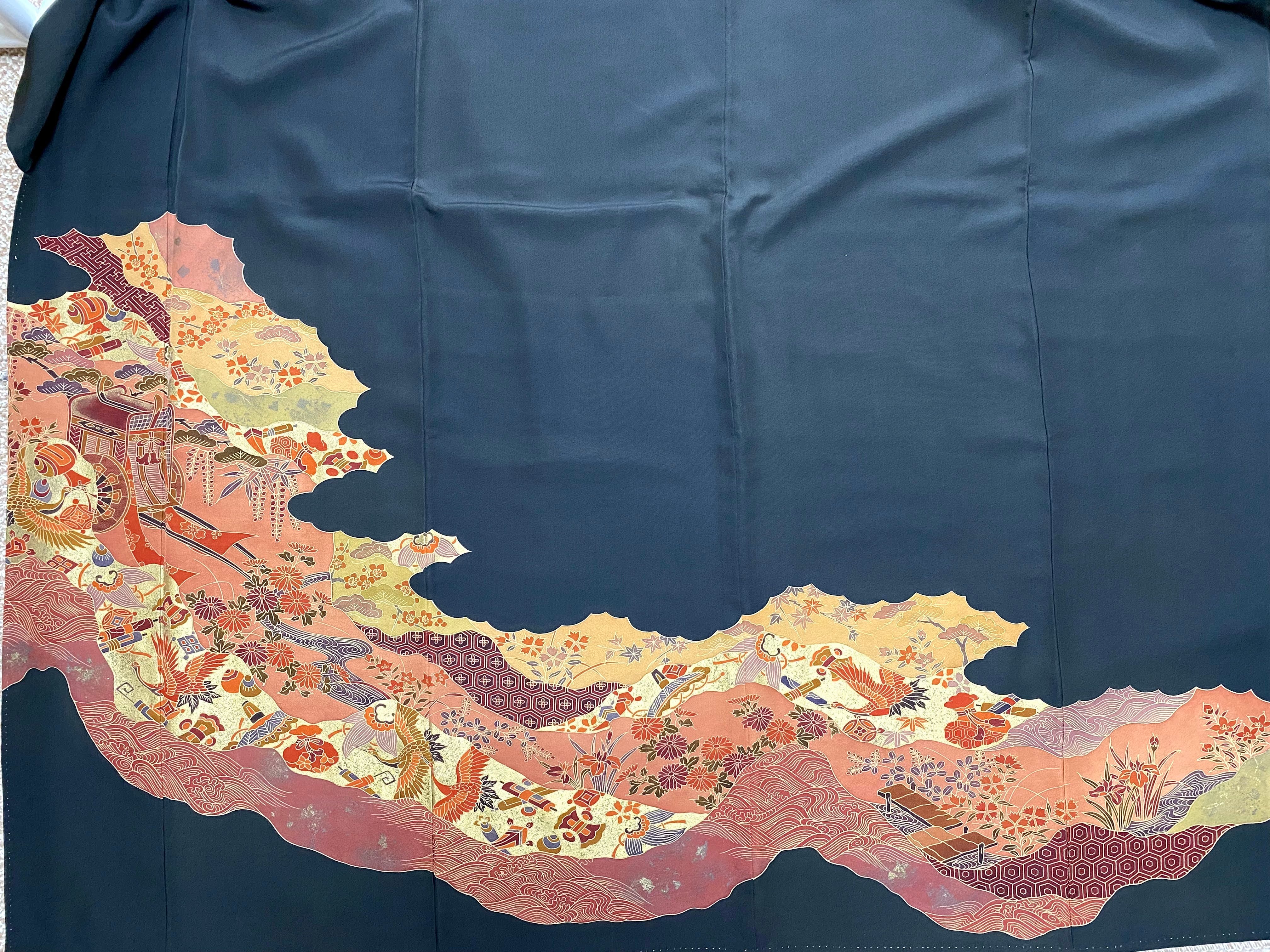 触り心地が滑らかで手にしっくりとくる安心感。絵柄の鮮やかさは日本の着物ならではの存在感で素晴らしく華やかな美しさです。