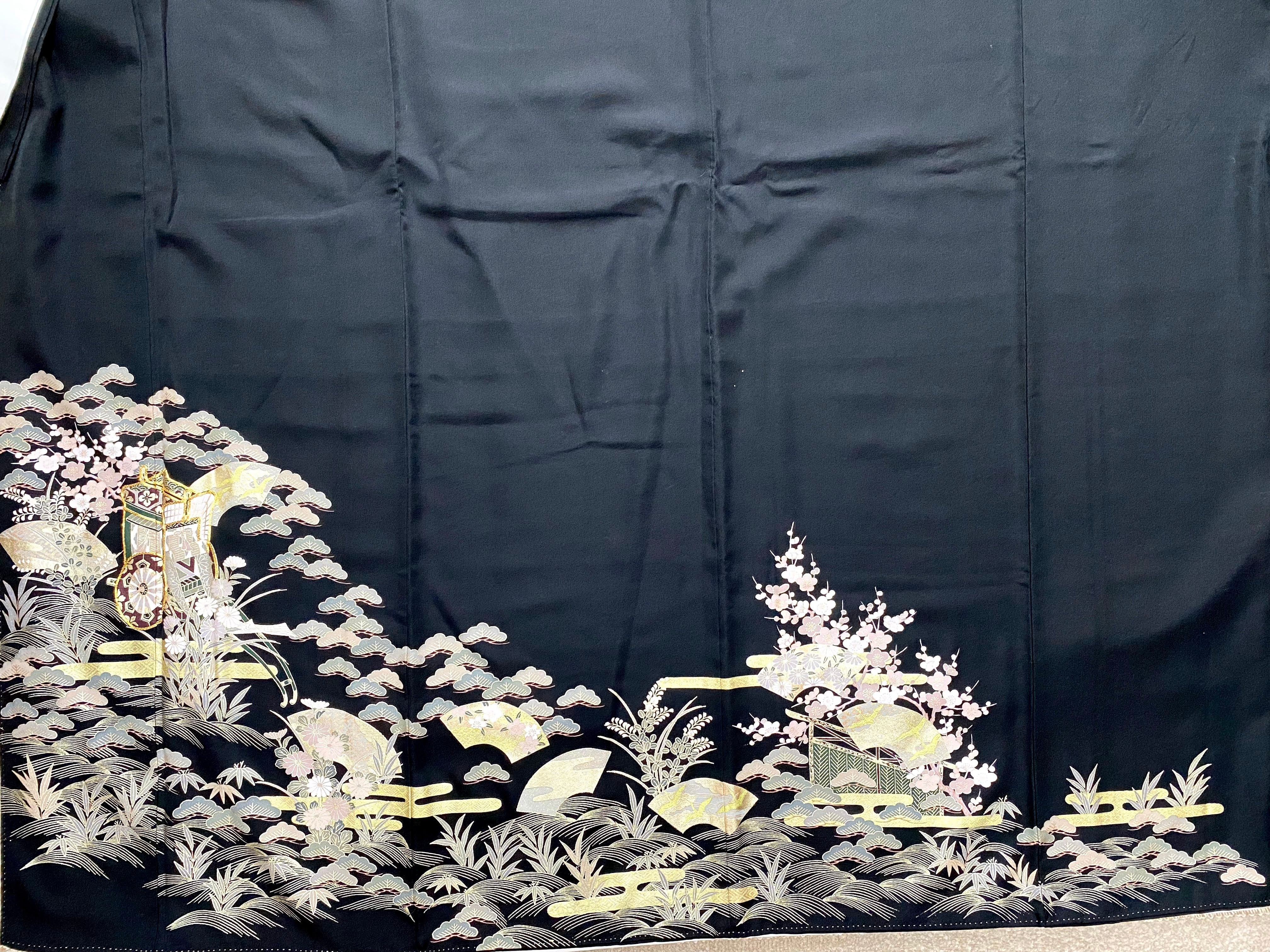 黒留袖着物リメイクウエストゴムスカート送料無料フリーサイズ1点物黒留袖着物リメイクウエストゴムスカートハンドメイド黒留袖着物リメイクスカート1点物NO.696