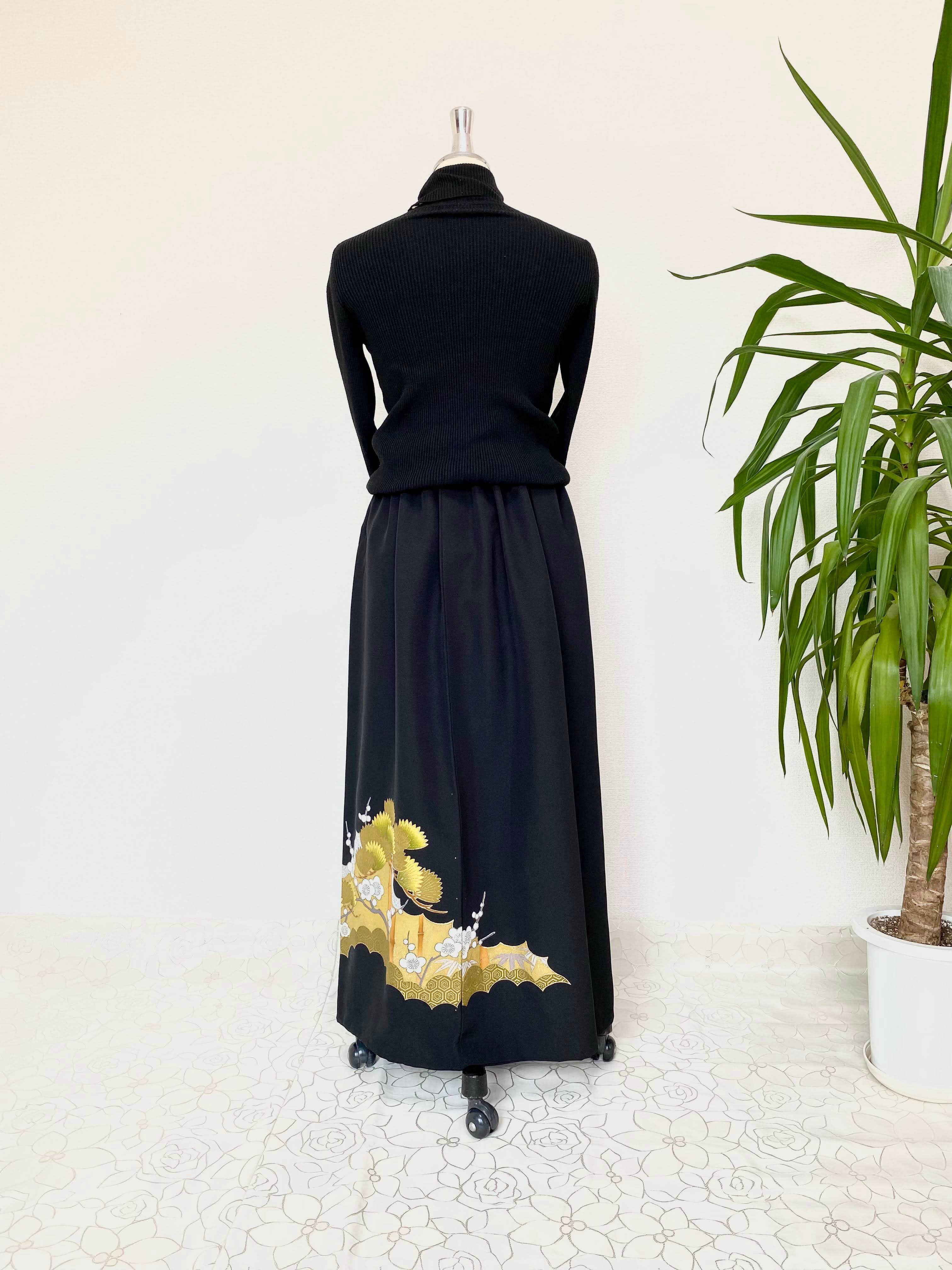 黒留袖着物リメイクウエストゴムスカート【超ロング丈】送料無料フリーサイズ1点物黒留袖着物リメイクウエストゴムスカート【超ロング丈】ハンドメイド黒留袖着物リメイクスカート1点物NO.708
