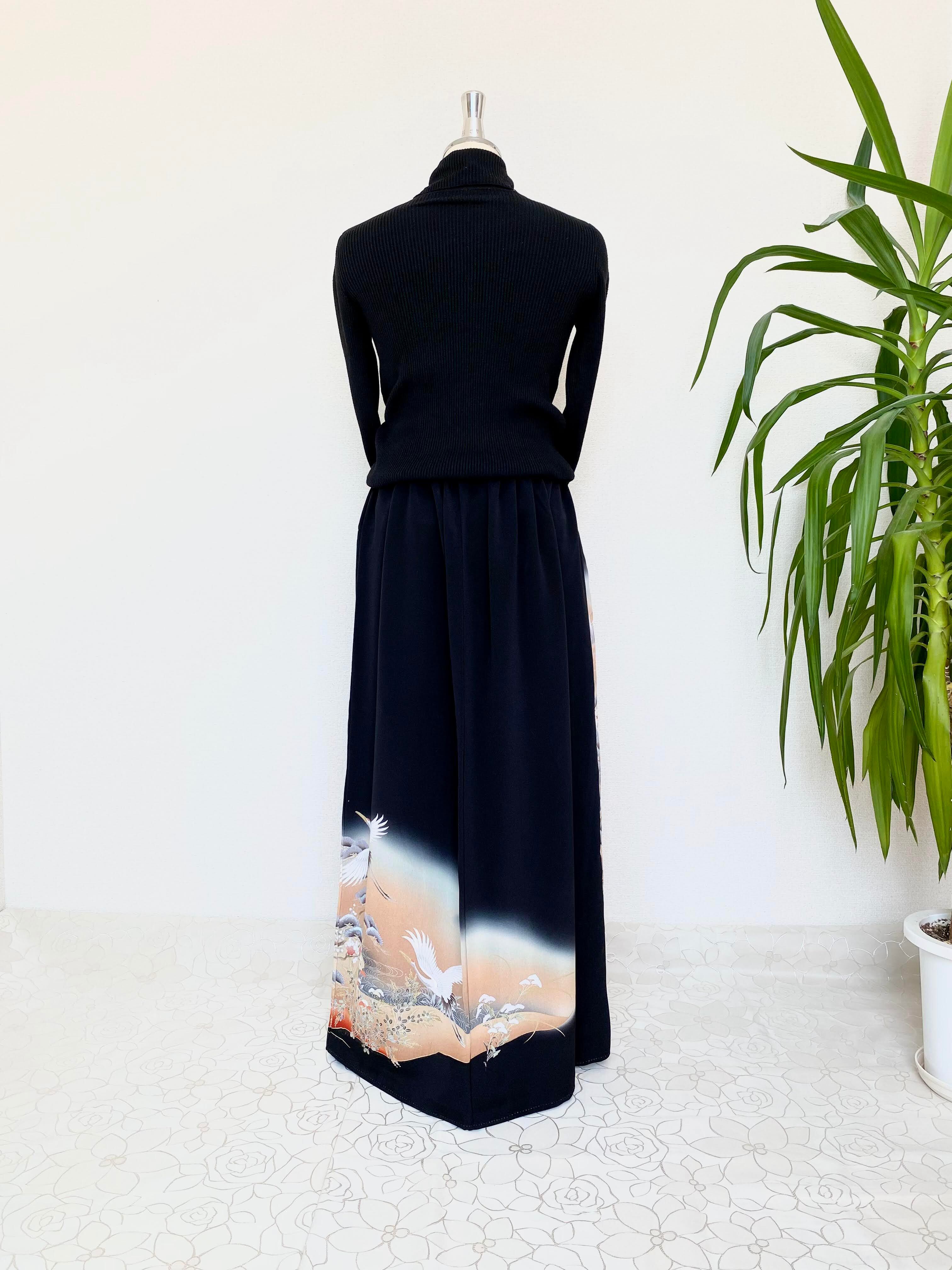 黒留袖着物リメイクウエストゴムスカート【超ロング丈】送料無料フリーサイズ1点物黒留袖着物リメイクウエストゴムスカート【超ロング丈】ハンドメイド黒留袖着物リメイクスカート1点物NO.714