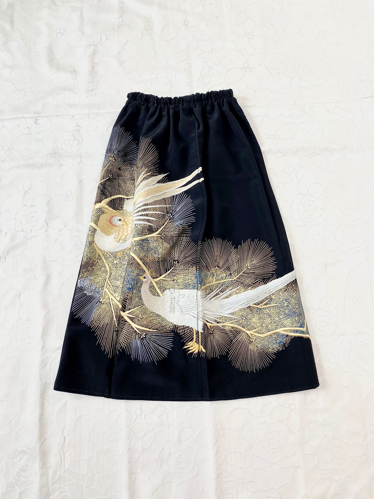 黒留袖着物をリメイクして作製したウエストゴムギャザードレススカートフリーサイズです。