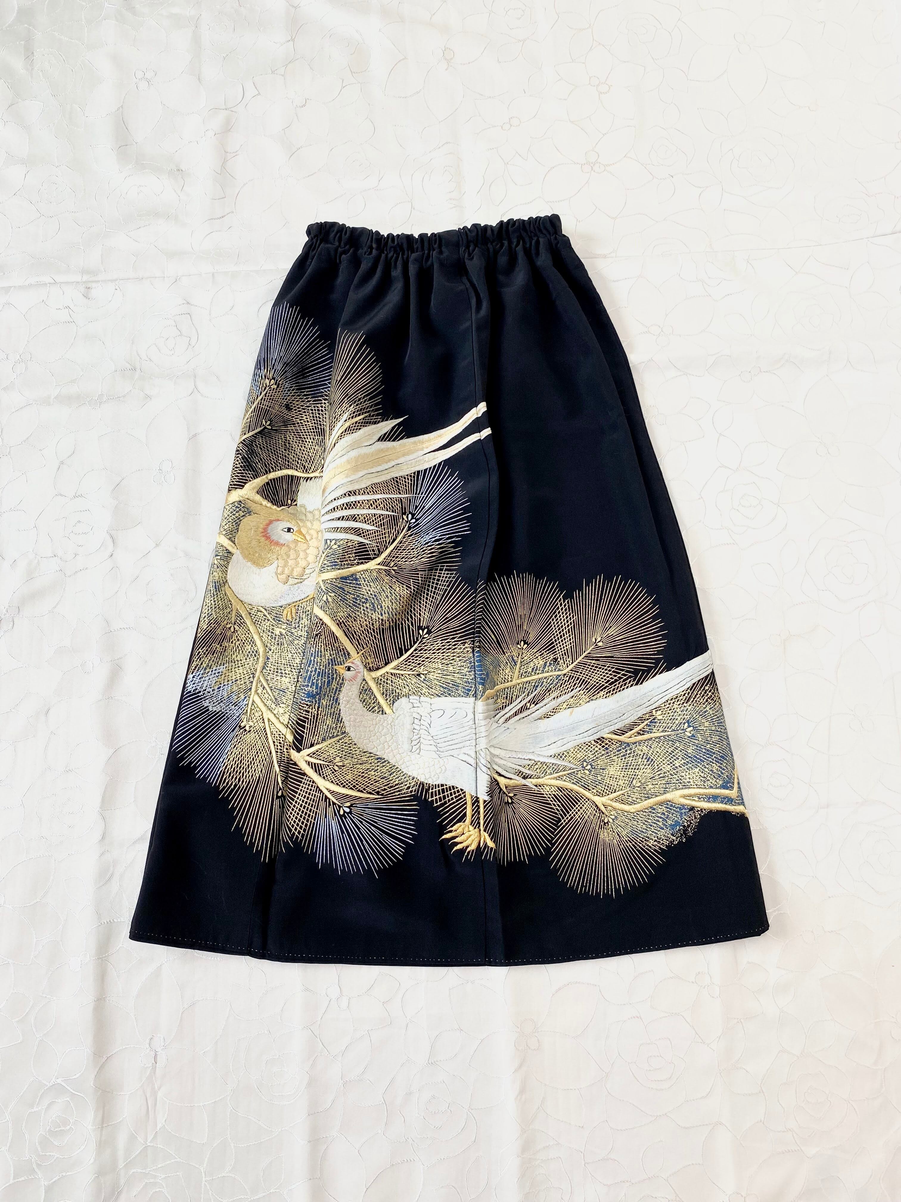 黒留袖着物リメイクウエストゴムスカート送料無料フリーサイズ1点物黒留袖着物リメイクウエストゴムスカートハンドメイド黒留袖着物リメイクスカート1点物NO.758