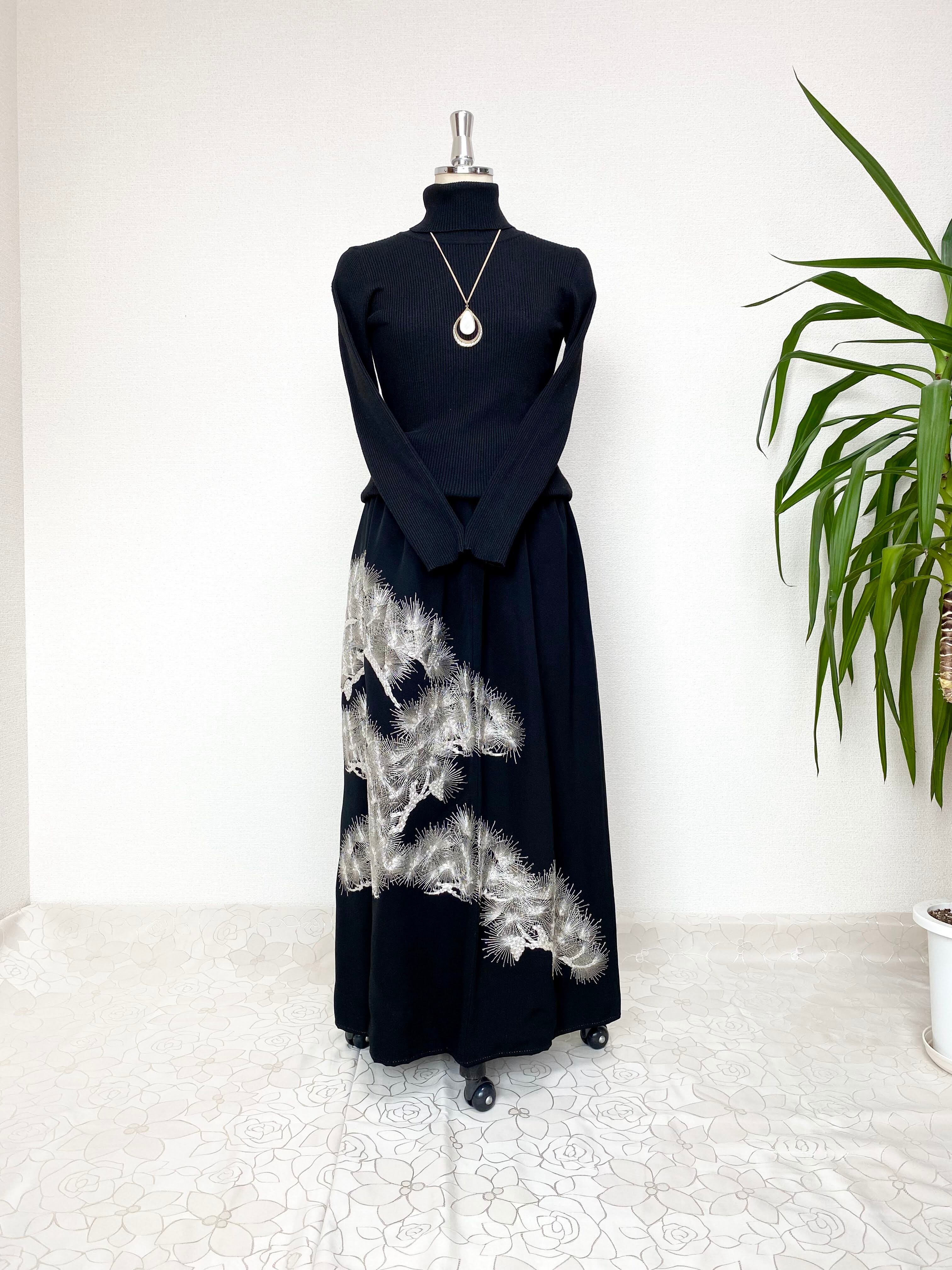 黒留袖着物リメイクウエストゴムスカート【超ロング丈】送料無料フリーサイズ1点物黒留袖着物リメイクウエストゴムスカート【超ロング丈】ハンドメイド黒留袖着物リメイクスカート1点物NO.764