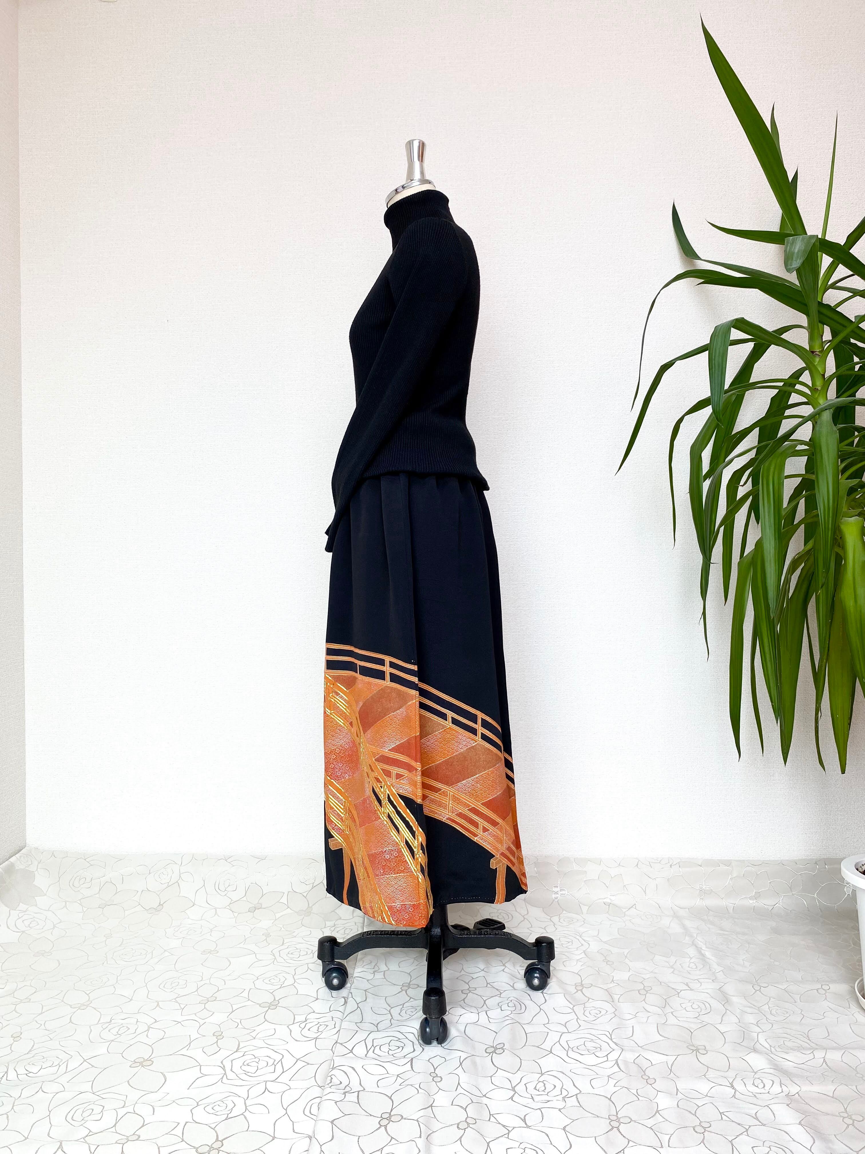 黒留袖着物リメイクウエストゴムスカート【おチビさん用】送料無料フリーサイズ1点物黒留袖着物リメイクウエストゴムスカート【おチビさん用】ハンドメイド黒留袖着物リメイクスカート1点物NO.797