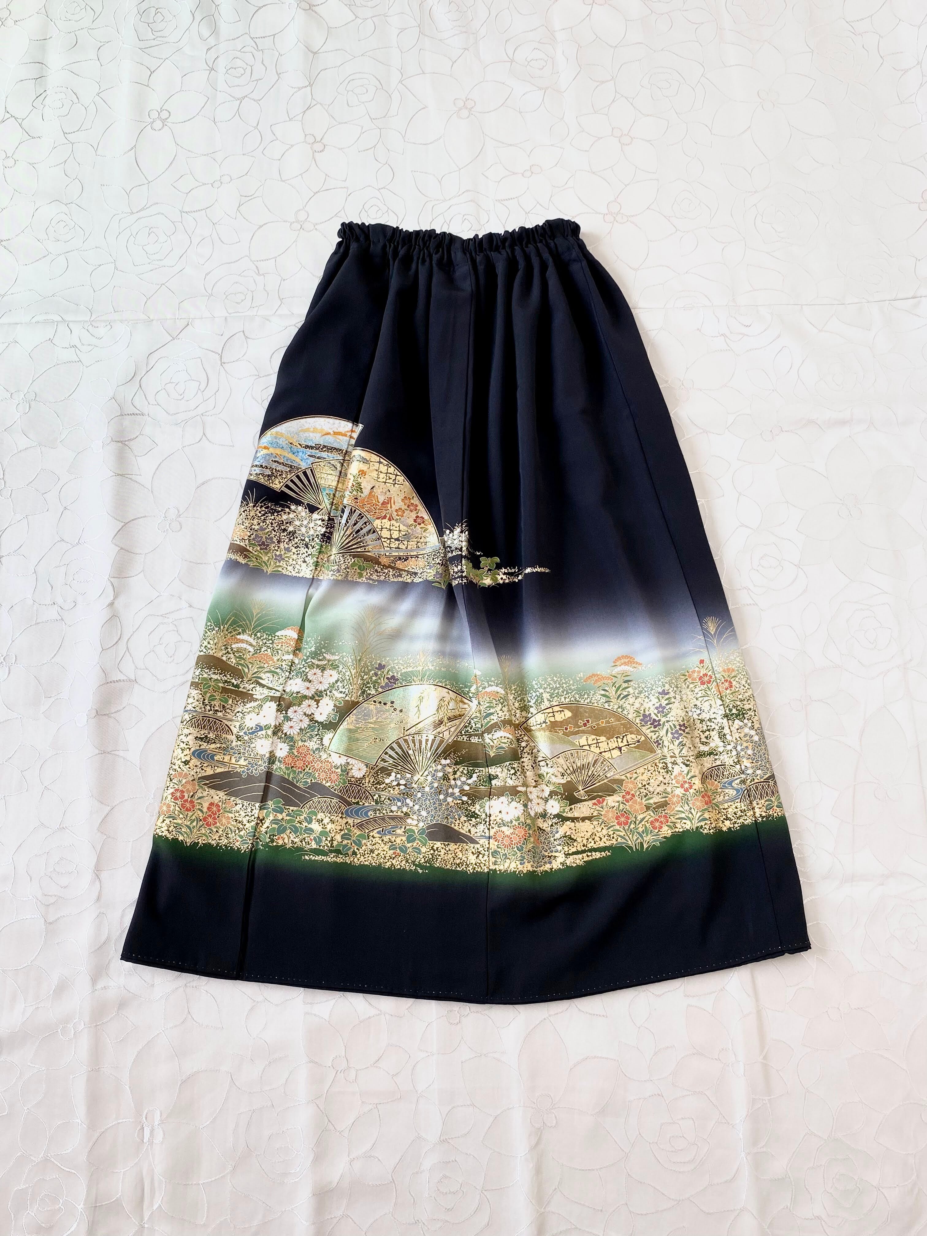 黒留袖着物リメイクウエストゴムスカートフリーサイズ