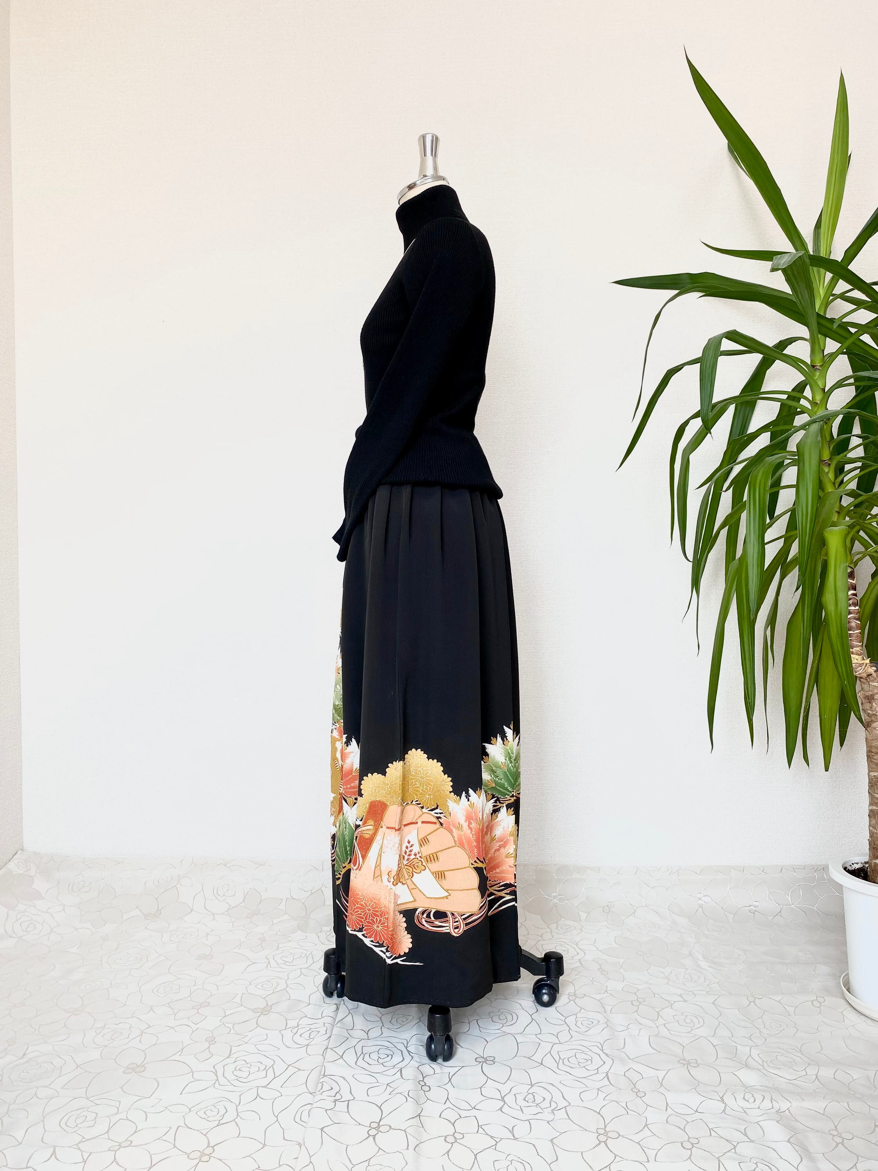 黒留袖着物リメイクウエストゴムスカート送料無料フリーサイズ1点物黒留袖着物リメイクウエストゴムスカートハンドメイド黒留袖着物リメイクスカート1点物NO.817