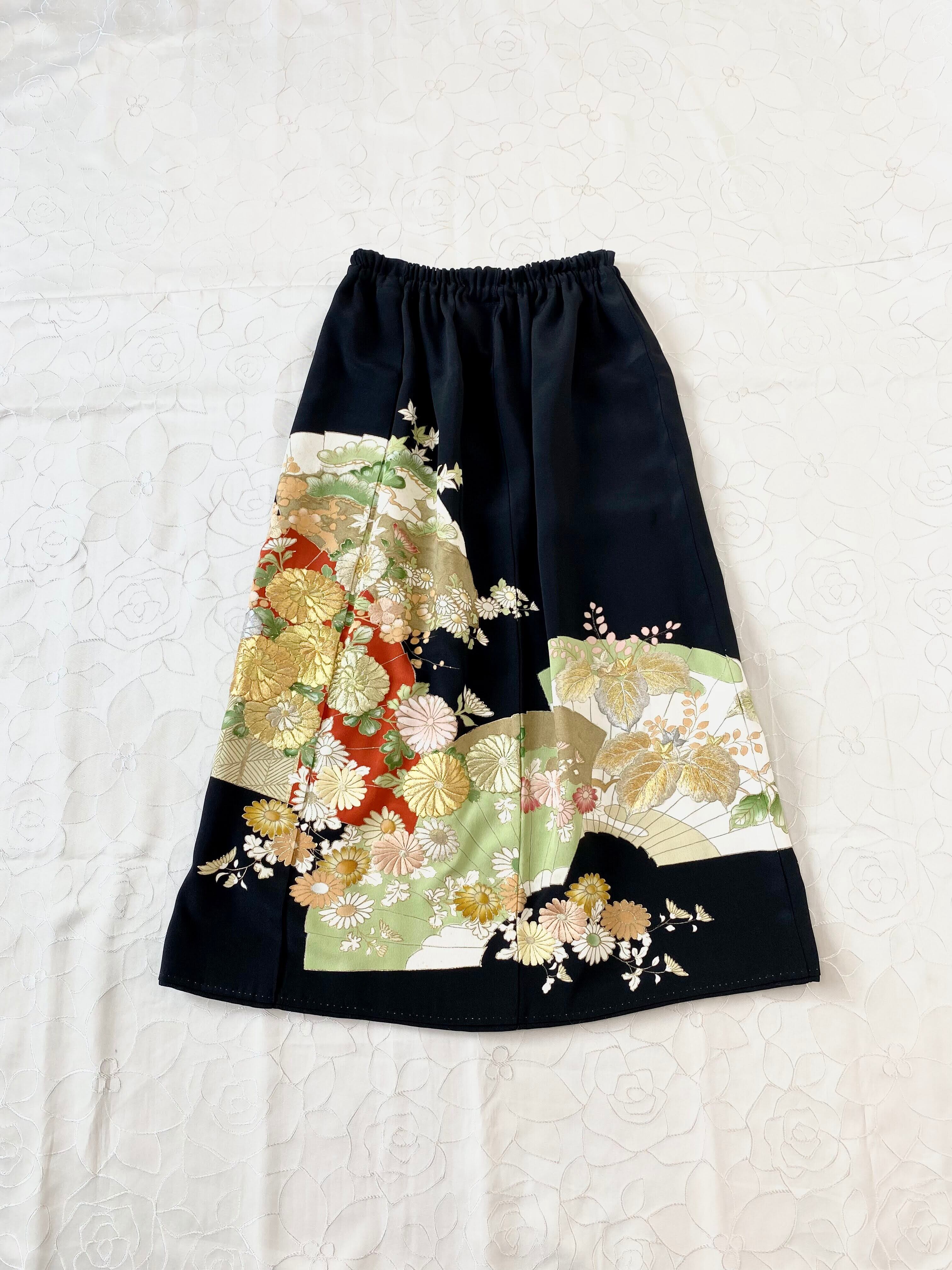 黒留袖着物リメイクウエストゴムスカート送料無料フリーサイズ1点物黒留袖着物リメイクウエストゴムスカートハンドメイド黒留袖着物リメイクスカート1点物NO.818