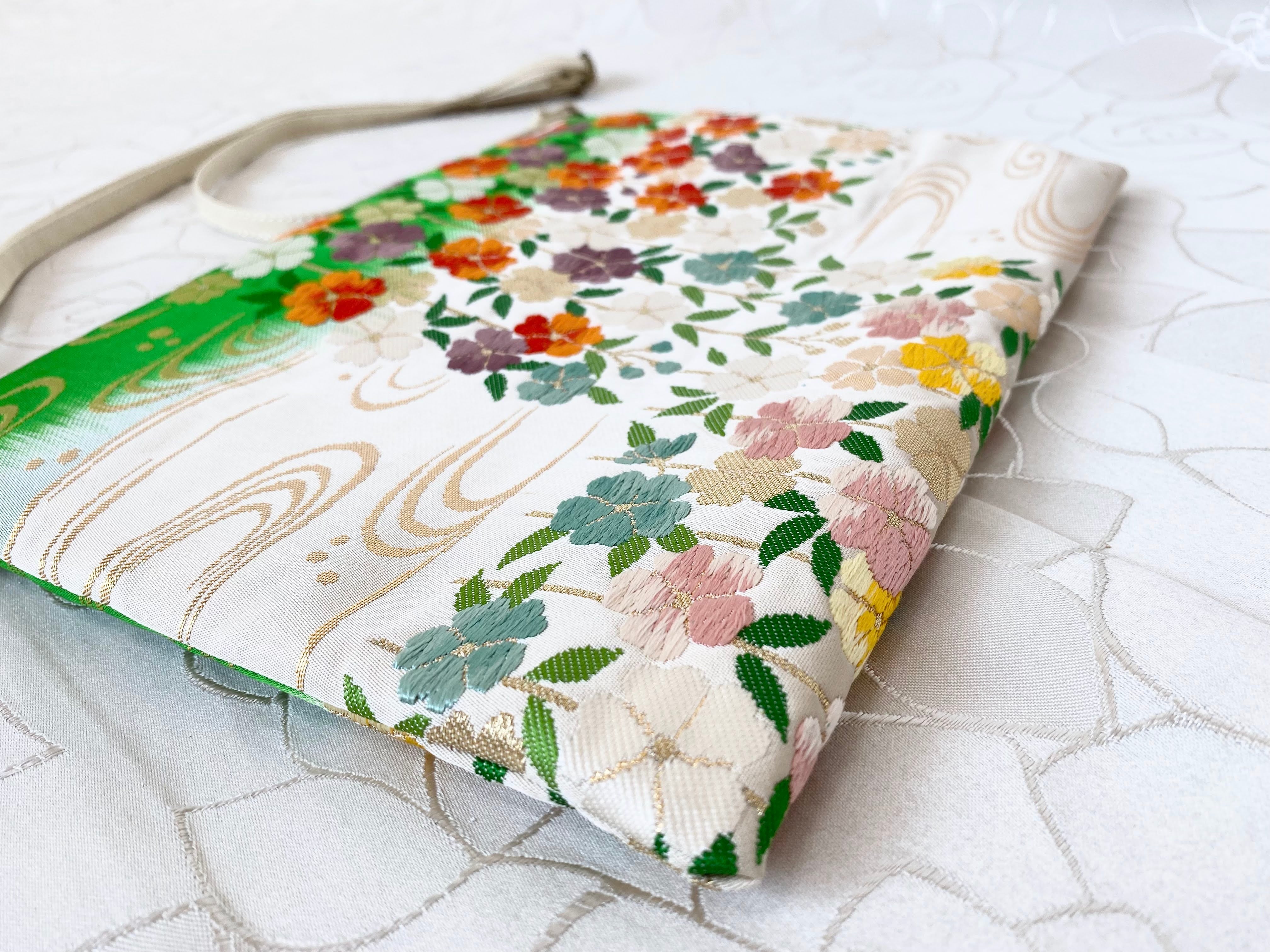 触り心地が滑らかで手にしっくりとくる安心感。絵柄の鮮やかさは日本の帯ならではの存在感で素晴らしく華やかな美しさです。