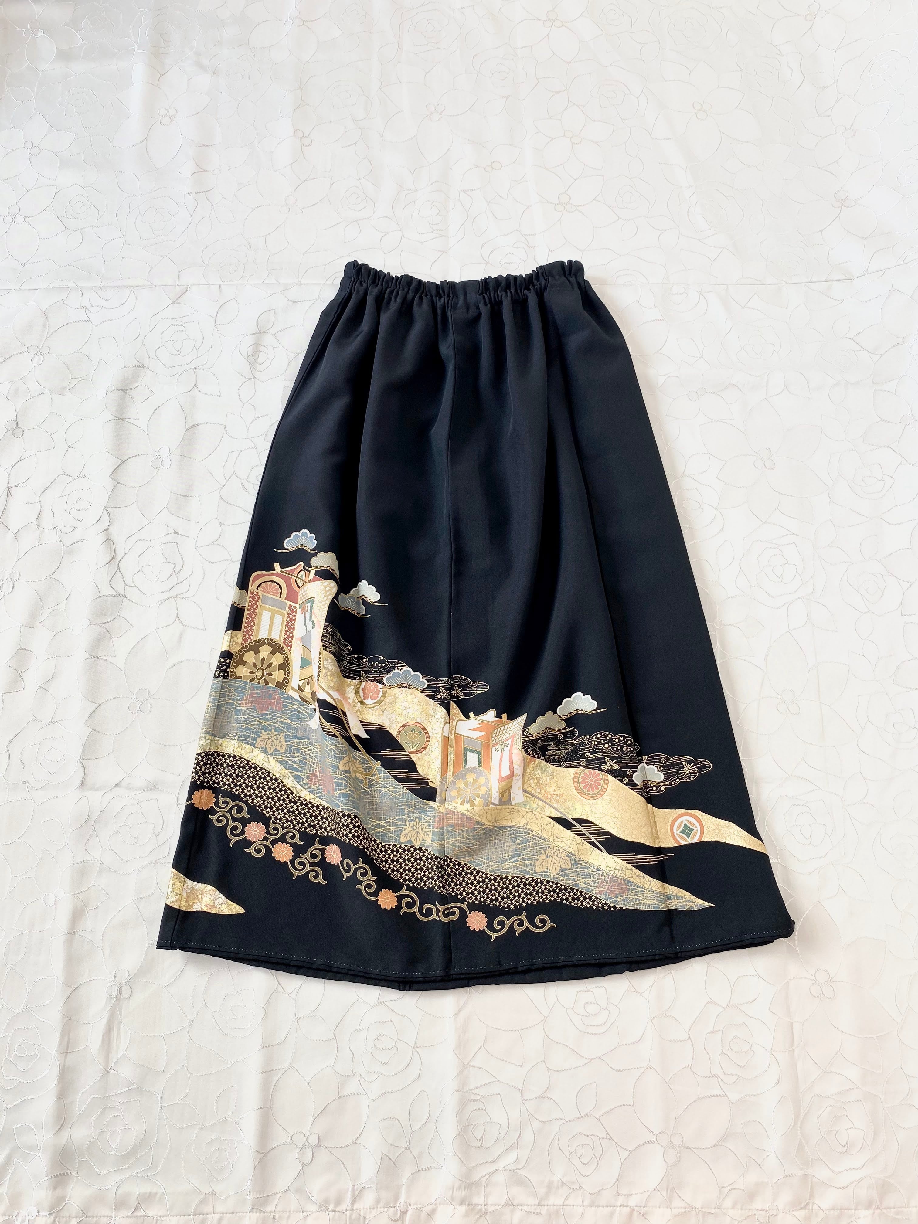 黒留袖着物リメイクウエストゴムスカート送料無料フリーサイズ1点物黒留袖着物リメイクウエストゴムスカートハンドメイド黒留袖着物リメイクスカート1点物NO.824