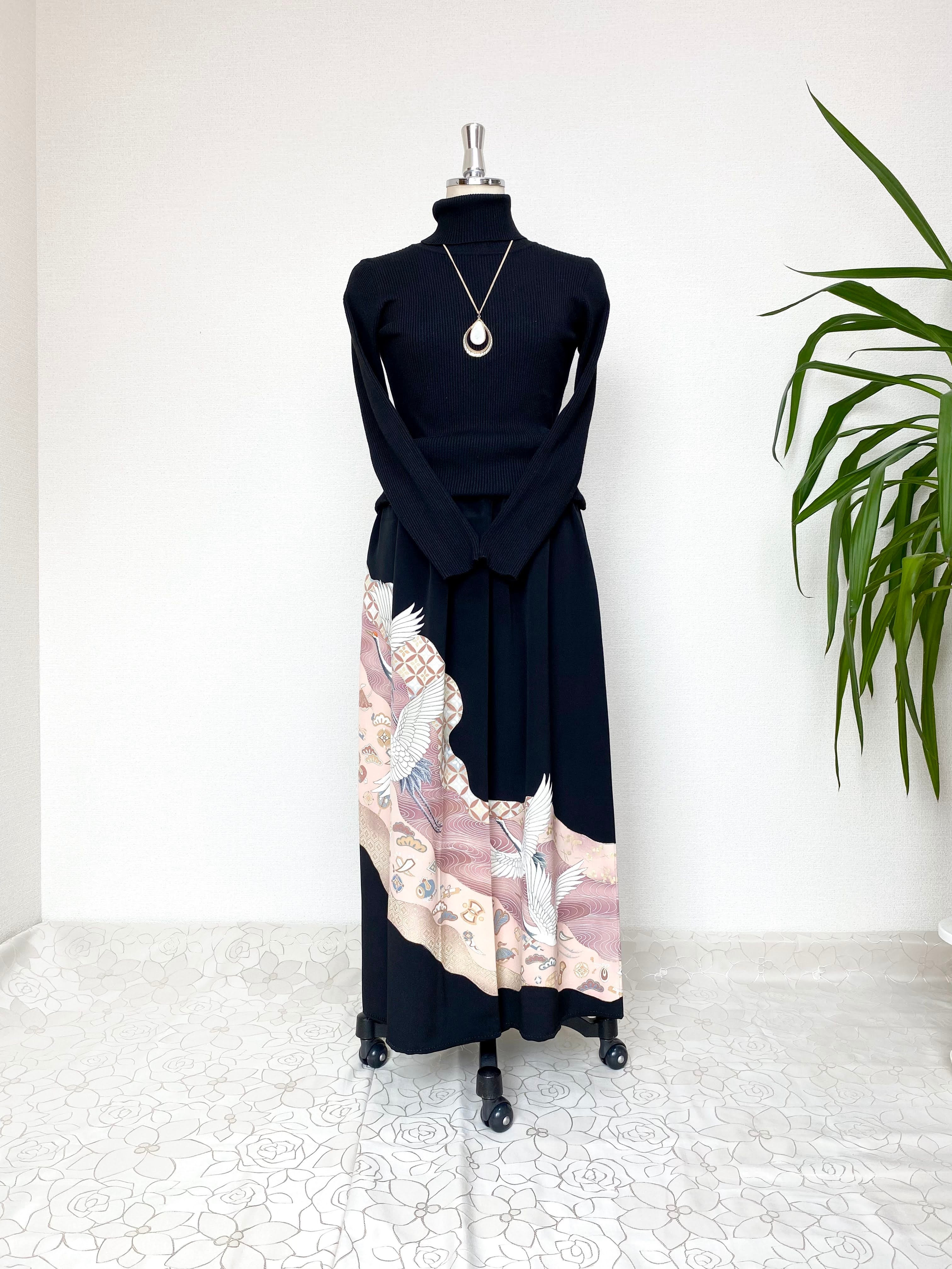 黒留袖着物リメイクウエストゴムスカートフリーサイズ