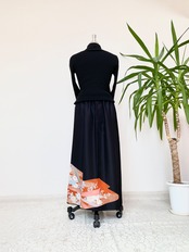 黒留袖着物リメイクウエストゴムスカート送料無料フリーサイズ1点物黒留袖着物リメイクウエストゴムスカートハンドメイド黒留袖着物リメイクスカート1点物NO.847