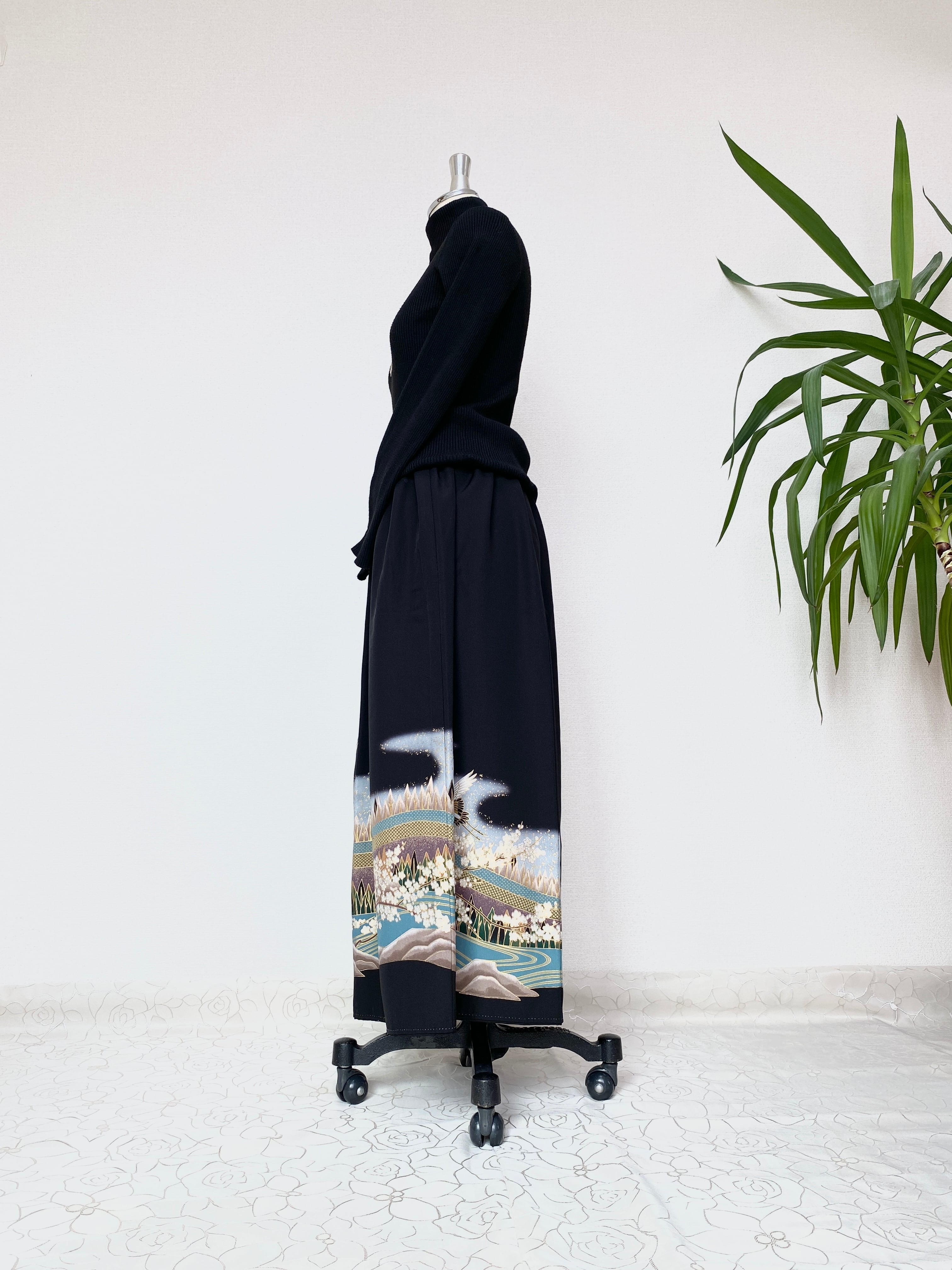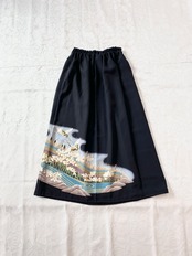 黒留袖着物リメイクウエストゴムスカートフリーサイズ