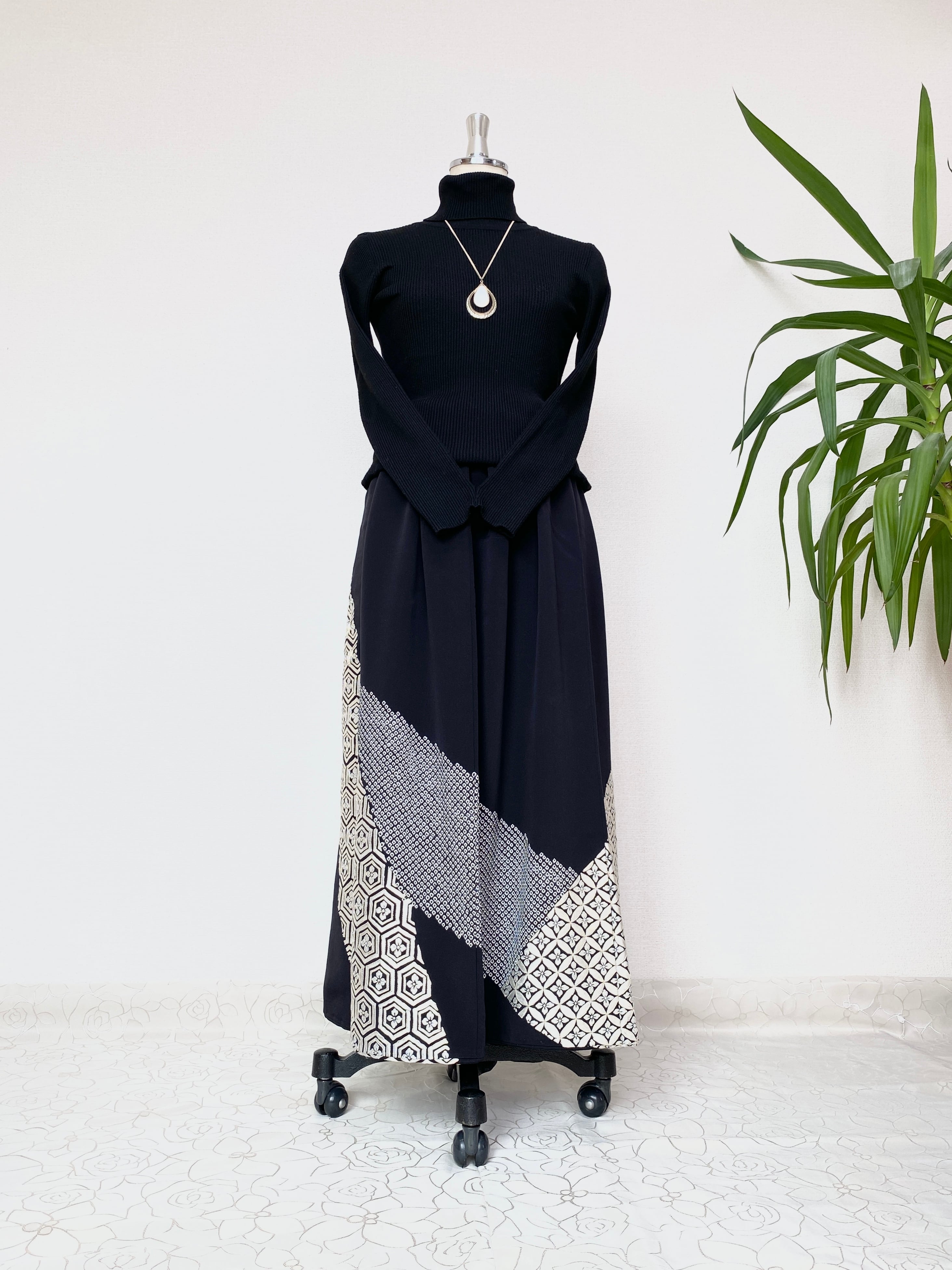 黒留袖着物リメイクウエストゴムスカート送料無料フリーサイズ1点物黒留袖着物リメイクウエストゴムスカートハンドメイド黒留袖着物リメイクスカート1点物NO.851