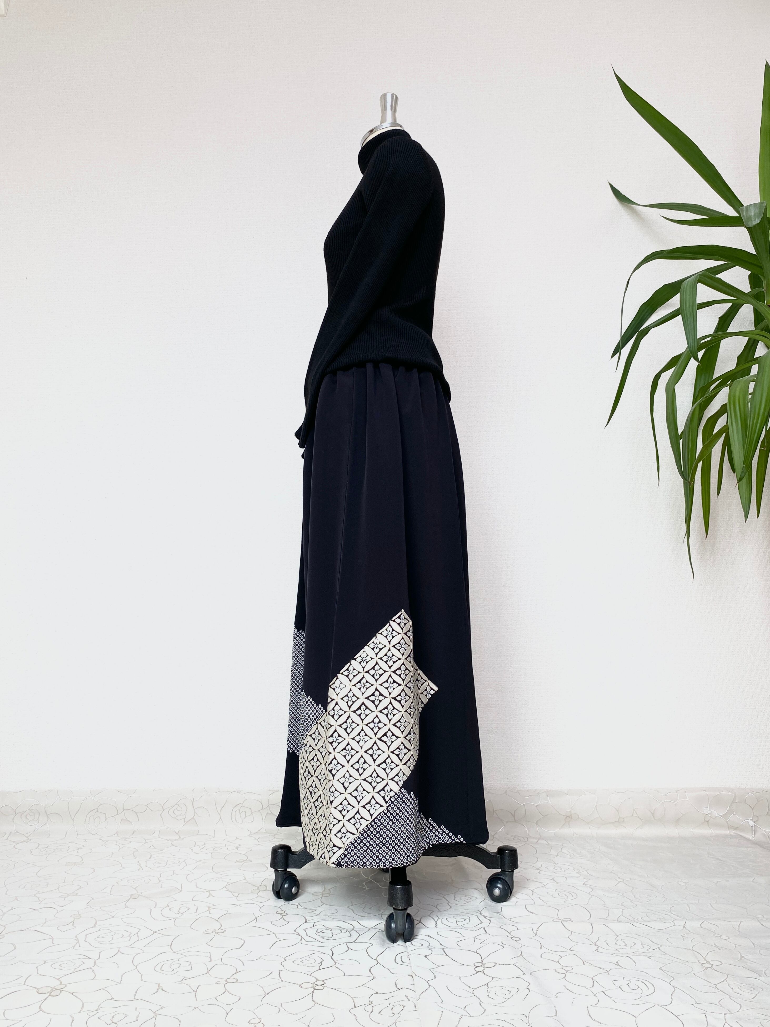 黒留袖着物リメイクウエストゴムスカートフリーサイズ