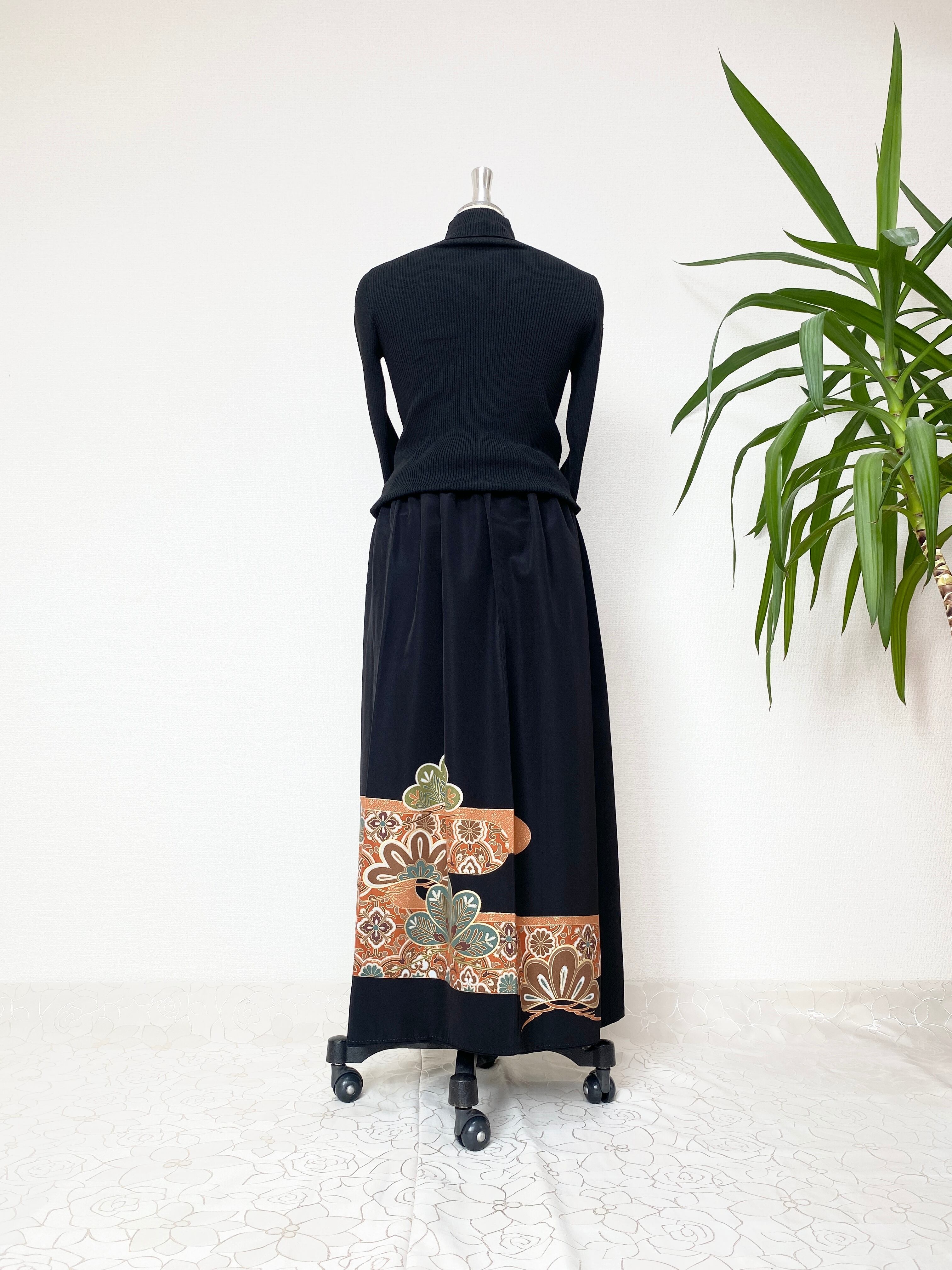 黒留袖着物リメイクウエストゴムスカート送料無料フリーサイズ1点物黒留袖着物リメイクウエストゴムスカートハンドメイド黒留袖着物リメイクスカート1点物NO.856
