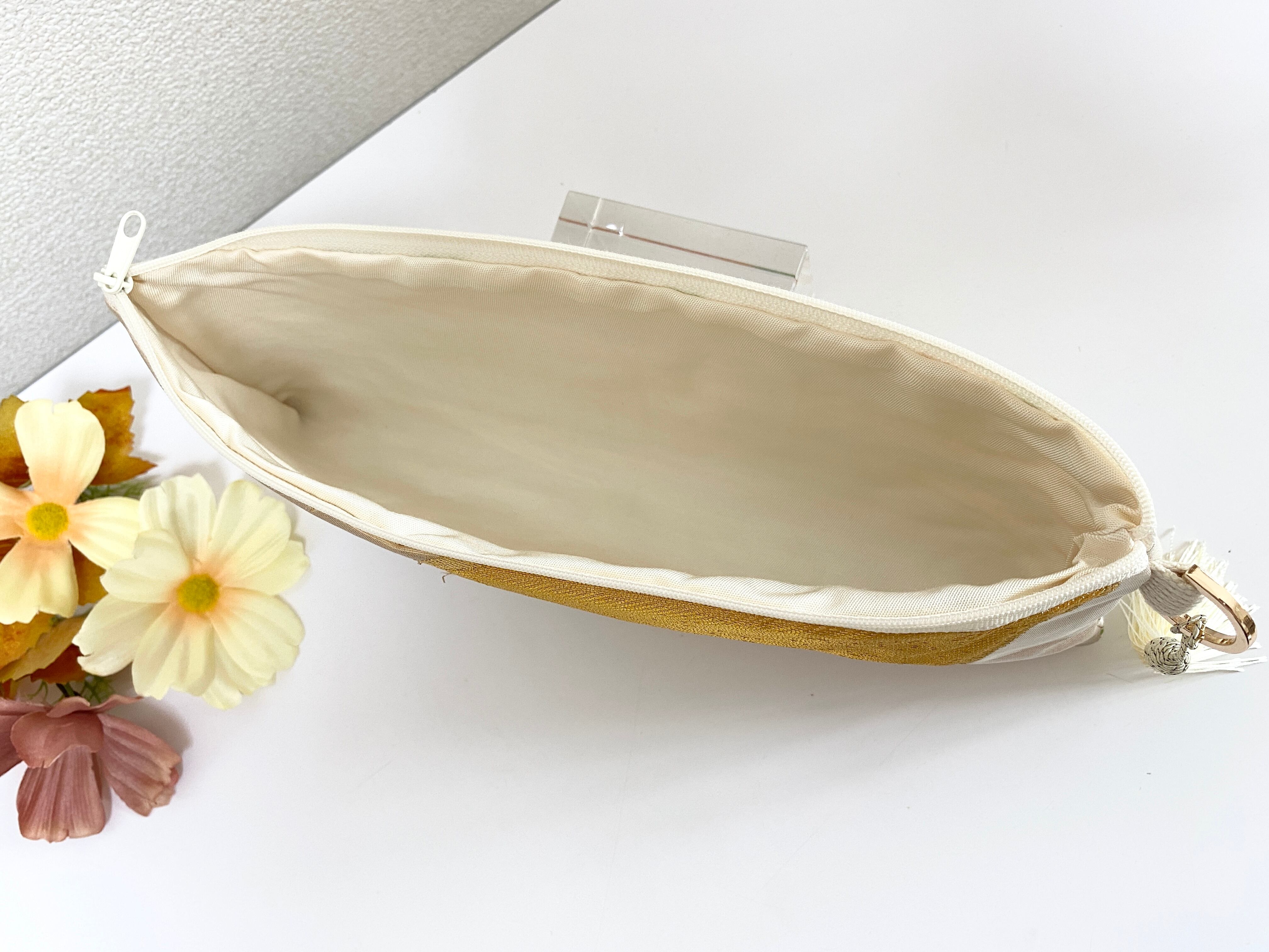日本の古帯を再利用リメイクして作製したポーチでハンドメイド品です。
